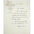 "Eigenhändiges Schriftstück (an Roger Marx), Auric wird gerne Mitglied im Ehrenkomitee ""Amis français de Charlie Chaplin""."