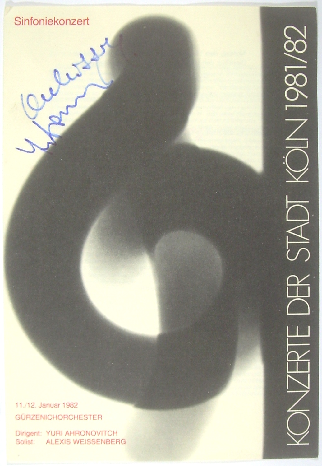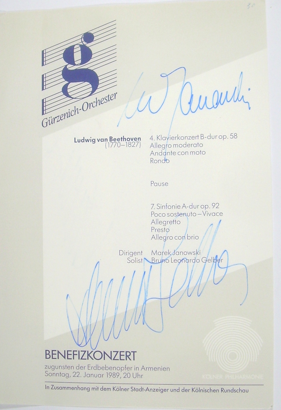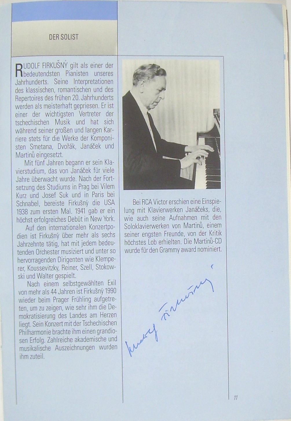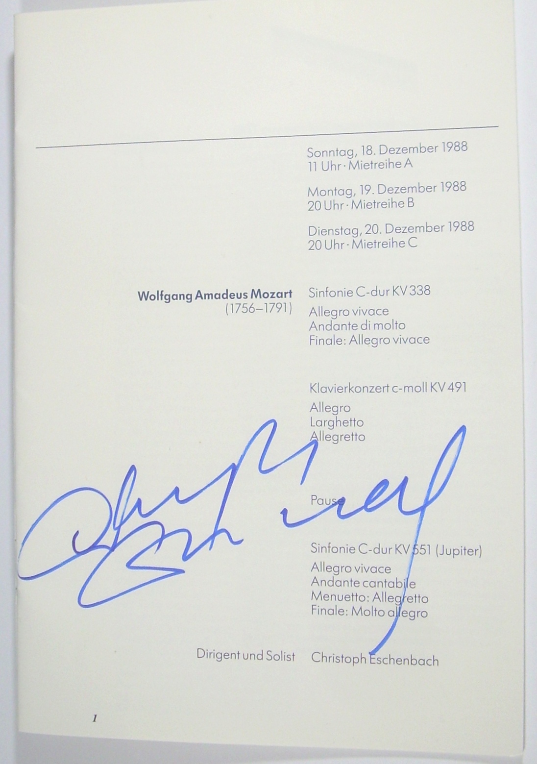 11 Pianisten - Autogramme auf Programmheften und Programmzetteln: Vladimir Ahkenazy, Alfred Brendel, Christoph Eschenbach, Rudolf Firkusny, Leon Fleisher, Bruno Leonardo Gelber, Radu Lupu, Nikita Magaloff, Maurizio Pollini, Swjatoslaw Richter, Alexis Weissenberg - Köln 1975-1997 und Salzburg 1972 (teilweise auch mit den Autogrammen Dirigenten der Konzerte).