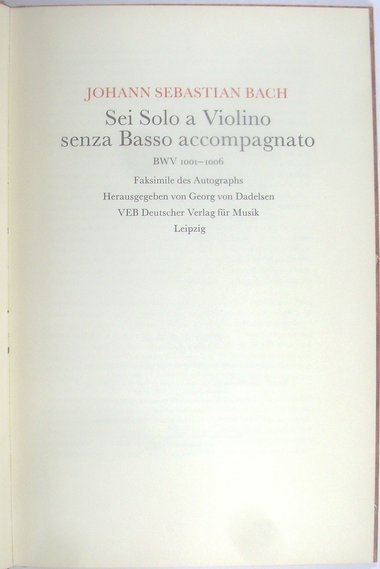 Sei Solo a Violino senza Basso accompagnato, BWV 1001 - 1006. Faksimile des Autographs (Dadelsen, Georg von (Hrsg.))