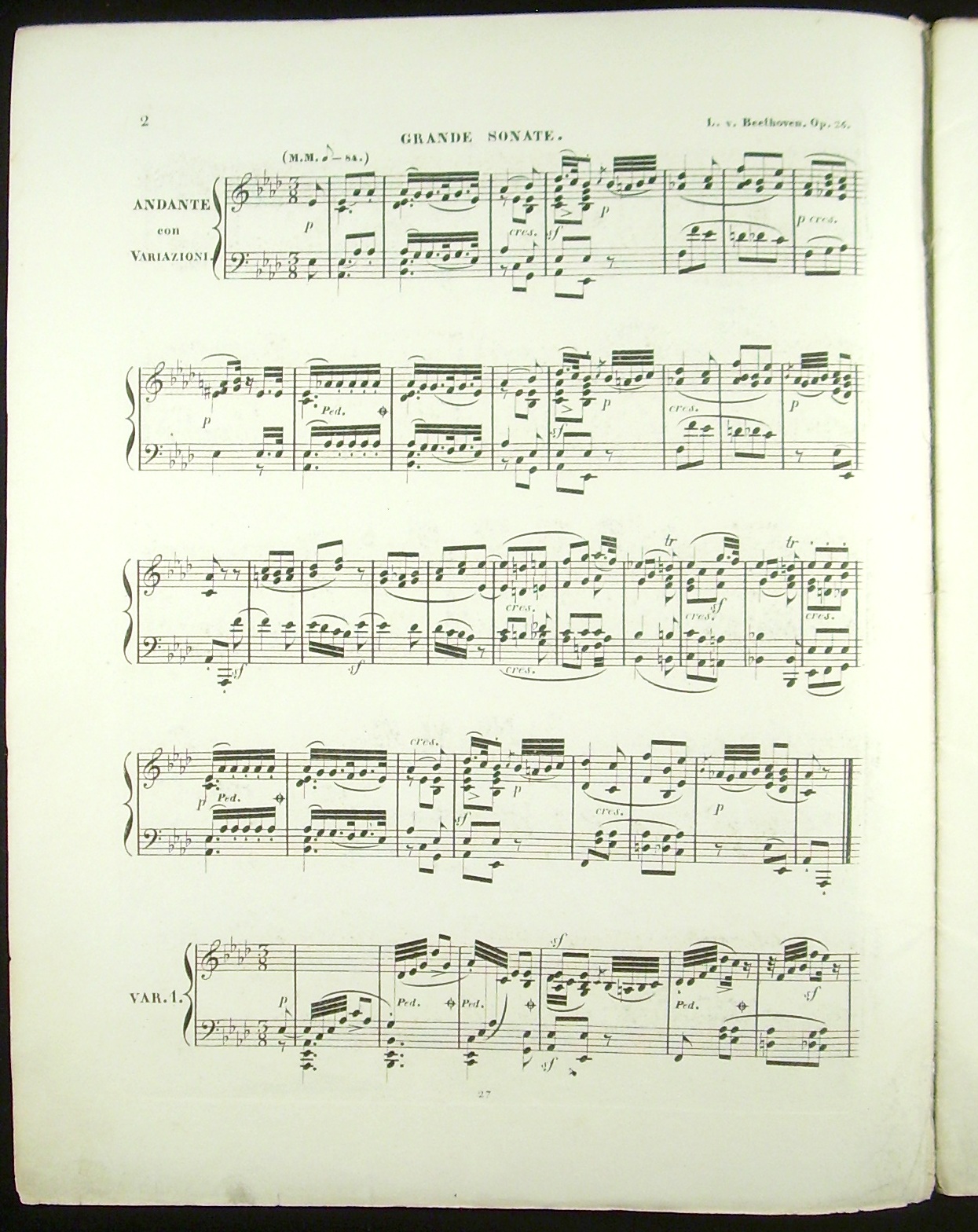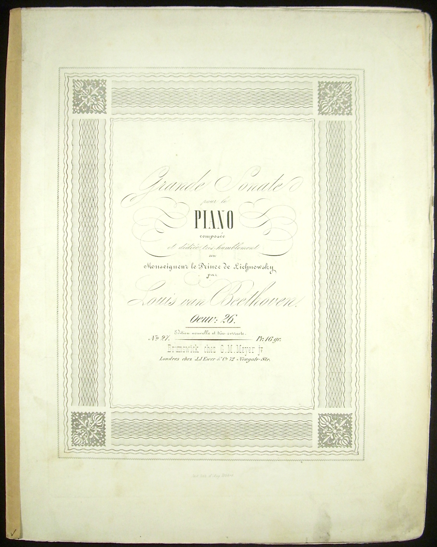 [Op. 26.] Grande Sonate pour le Piano composee et dediee tres-humblement au Monseigneur le Prince de Lichnowsky. Oeuv: 26. Edition nouvelle et tres-correcte.