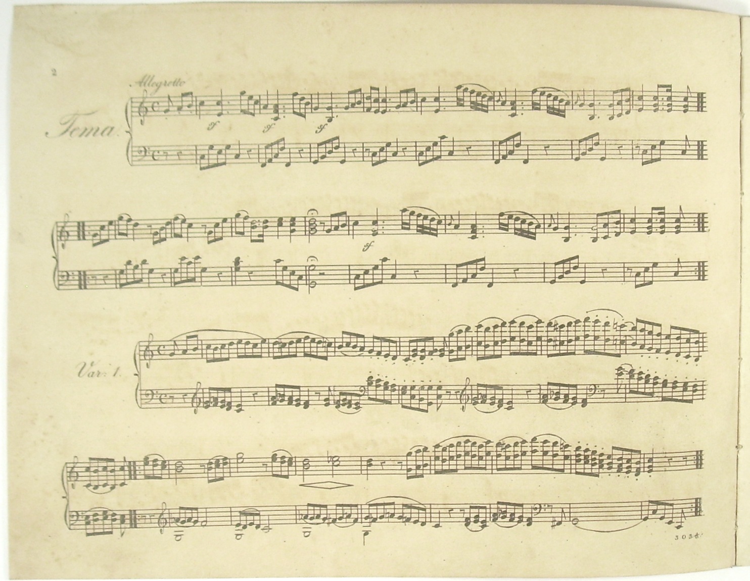 Vermutlich frühe Titelauflage - Notendruck beginnt gleich auf dem Titelblatt verso, Preisangabe in Gulden (f 1.-) und Reichsthaler (13 1/3 ggr. C.M.).