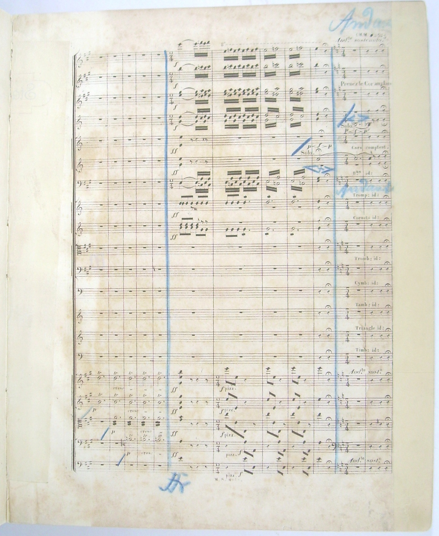 33x27 cm, 53 Seiten, ohne Titel, Notentext komplett. Späterer privater Kartoneinband, Arbeitsexemplar mit Eintragungen in Bleistift und Blaustift, fleckig, erste und letzte Seiten am Rand verstärkt, fleckig
