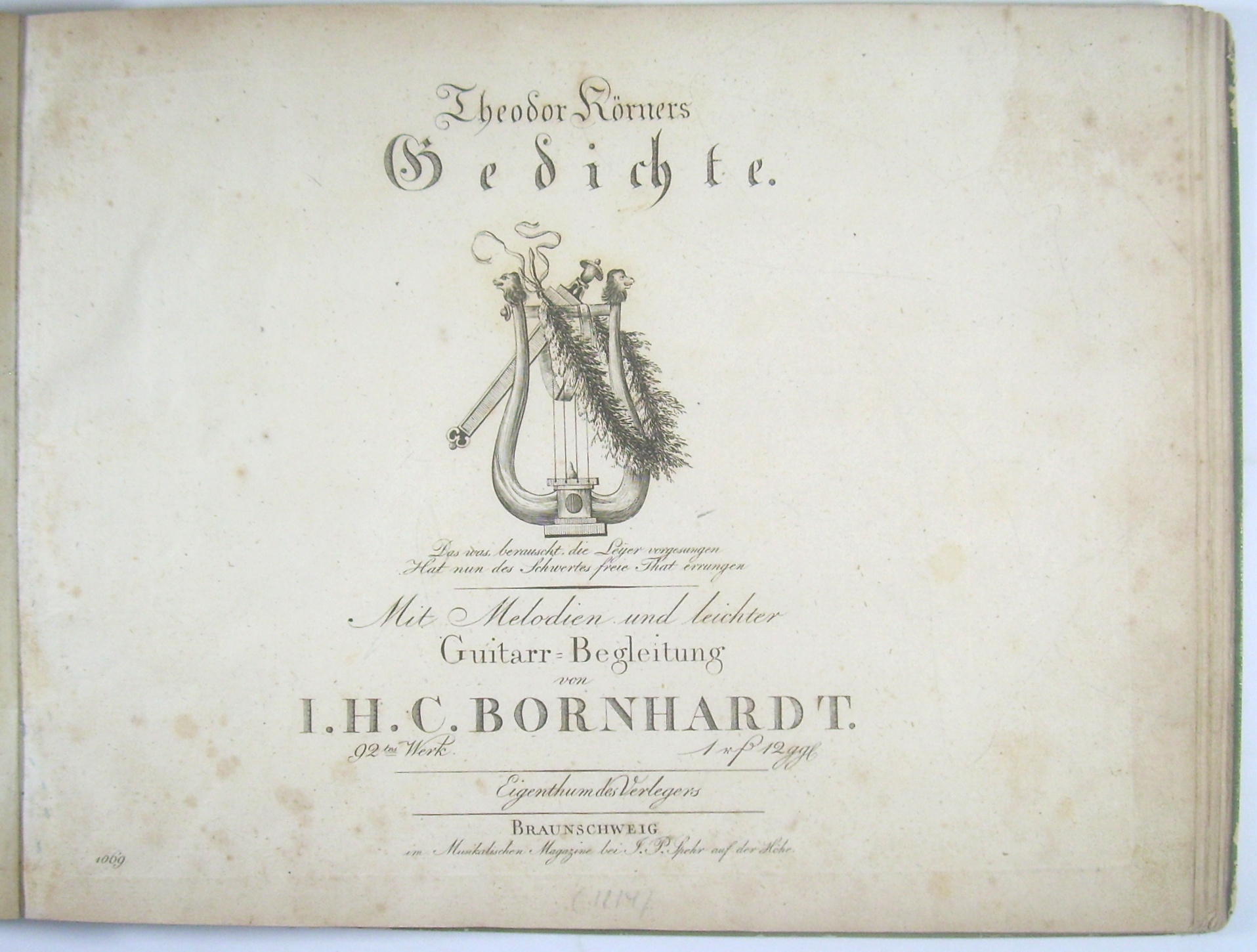 [Op. 92] Theodor Körners Gedichte. Mit Melodien und leichter Guitarr=Begleitung. 92tes Werk.