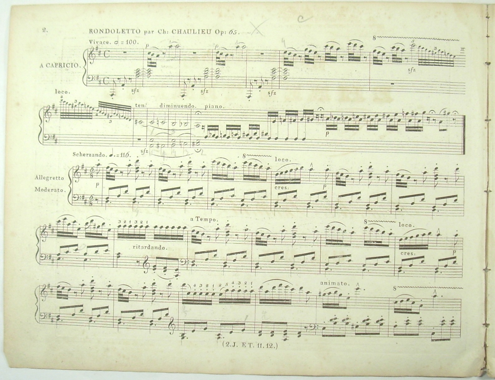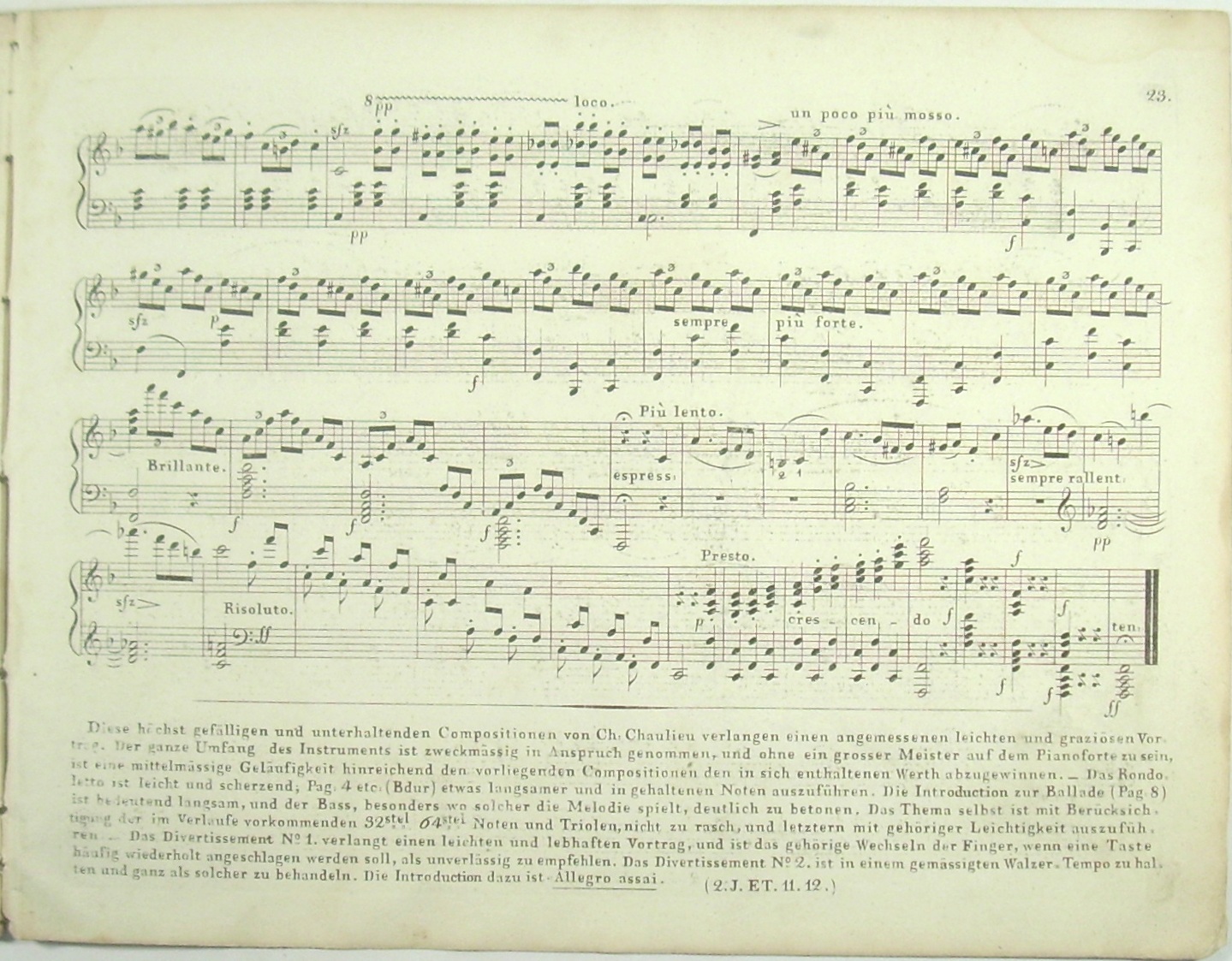 Querformat 25x32 cm, 23 Seiten gestochen, gering fleckig, einige Einträge in Bleistift (Fingersatz).