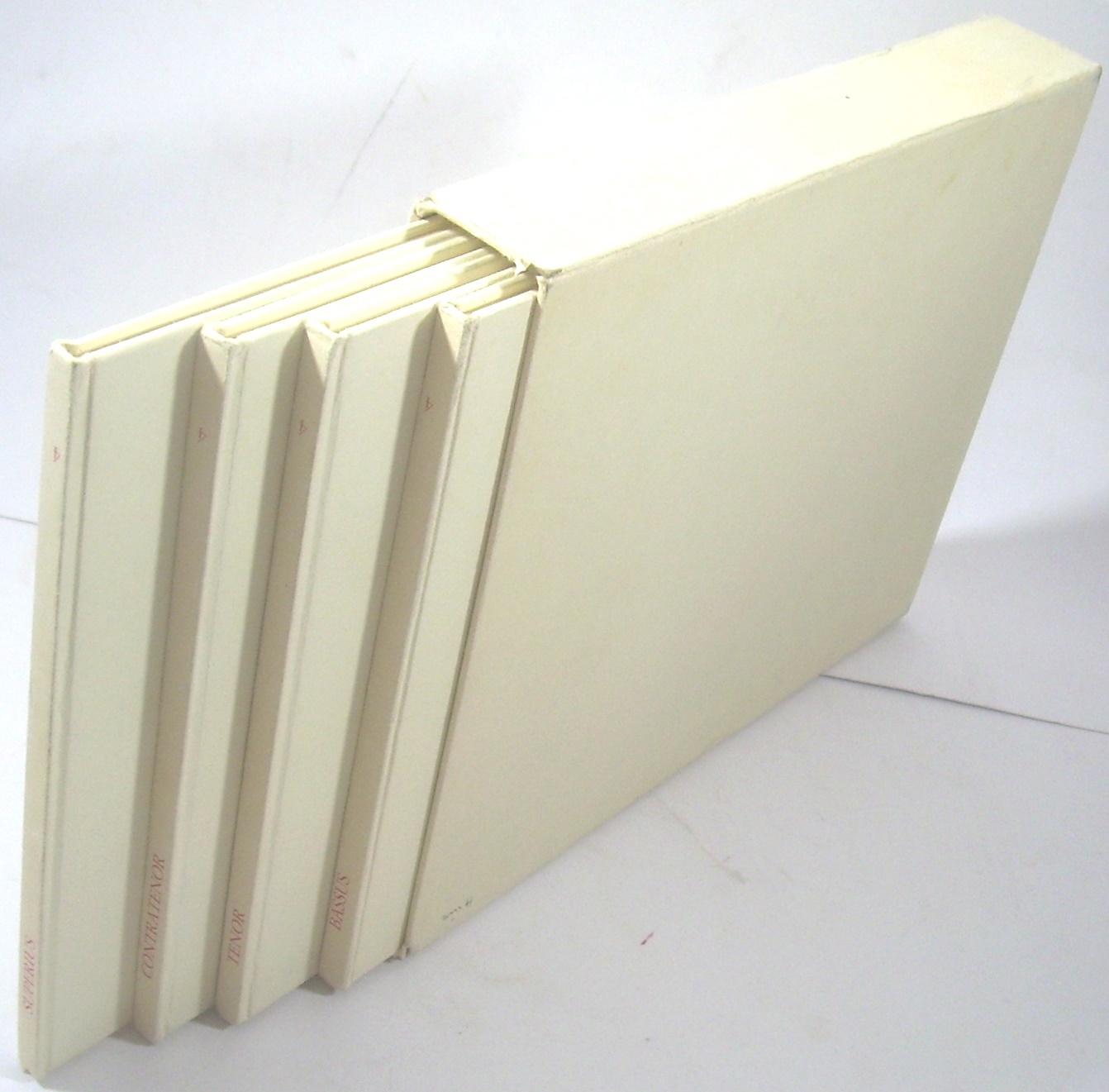 Querformat 18x23 cm, 4 Stimmbücher in Schuber mit roten Deckel- und Rückentittel, berieben, Namenszug, einige Eintragungen in Bleistift.