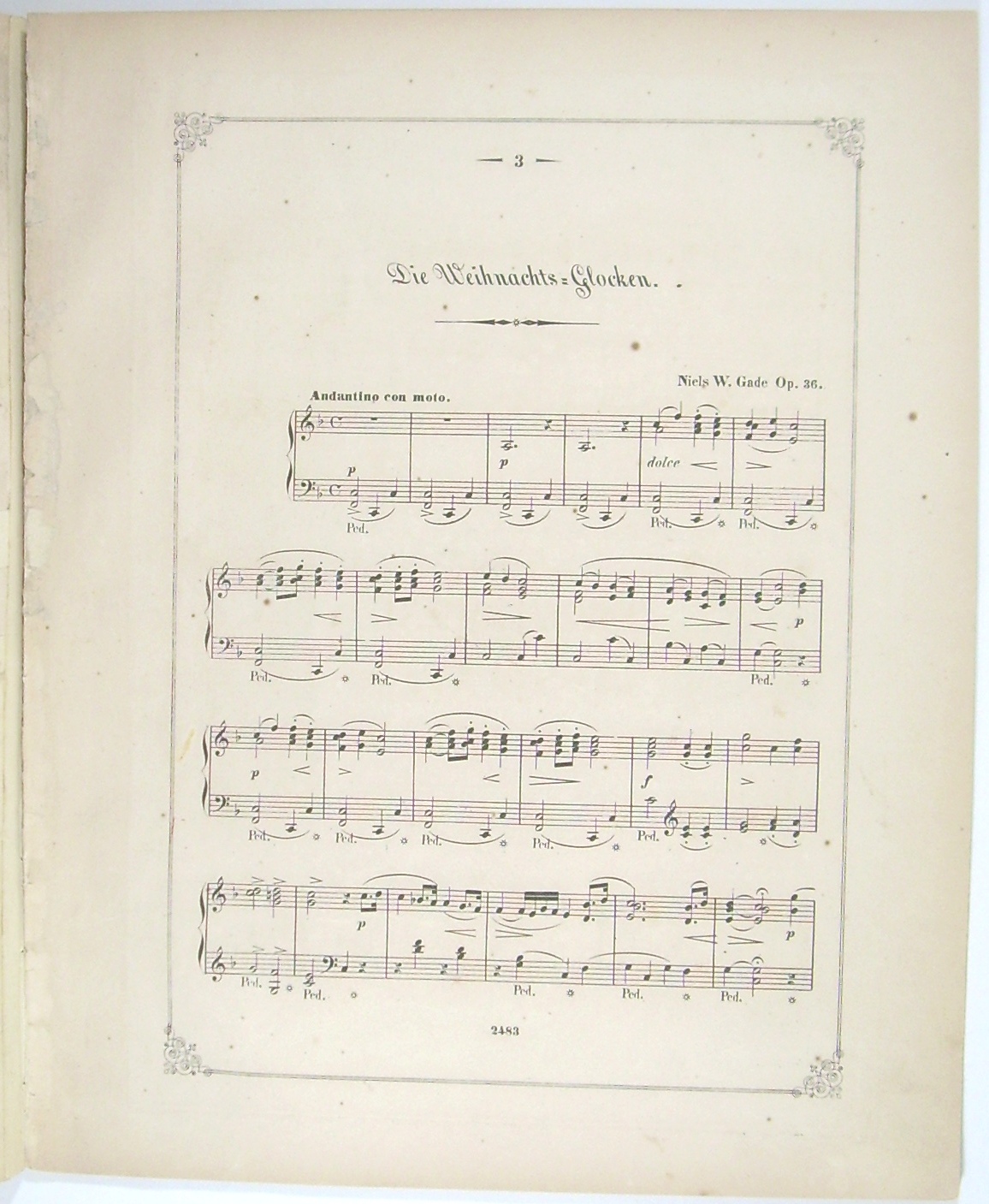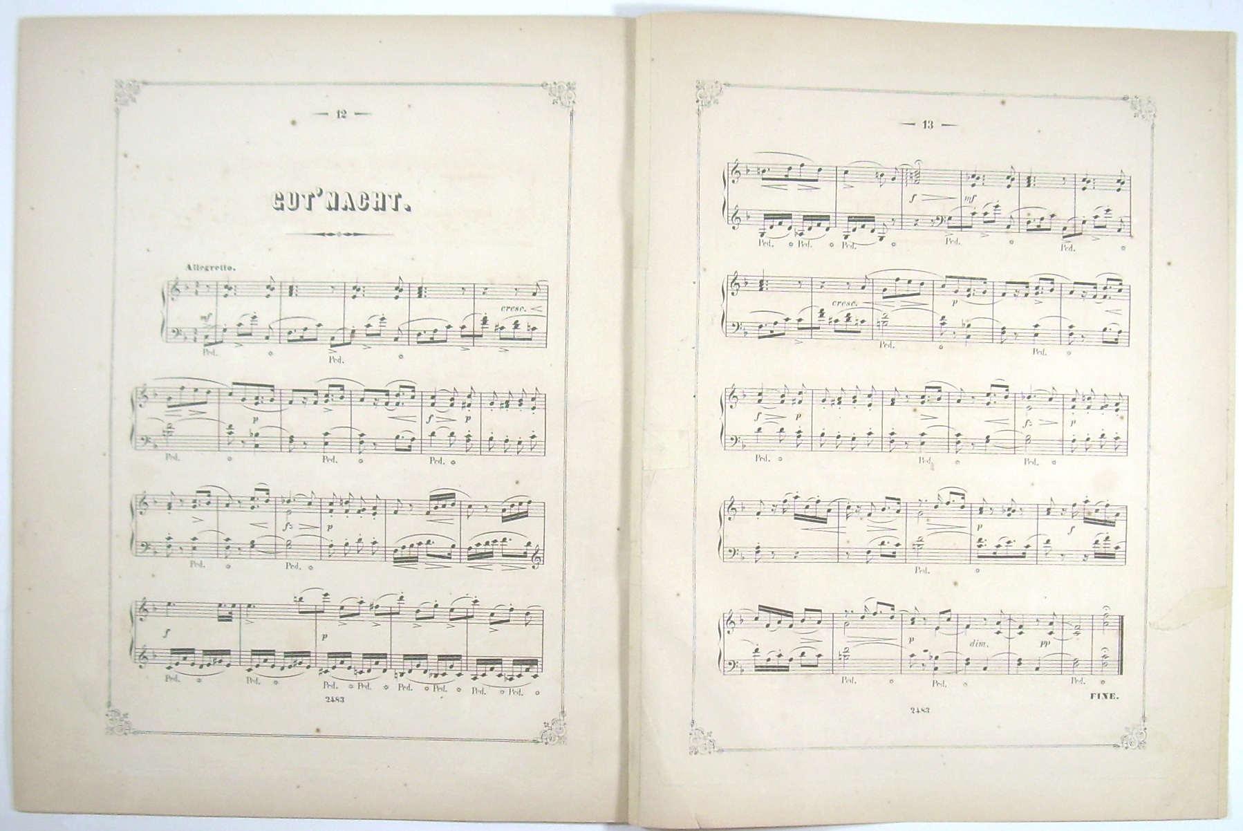 32x26 cm, 13 Seiten, illustrierter Titel, Rücken mit weißem Klebstreifen verstärkt. Notendruck in Zierrahmen.