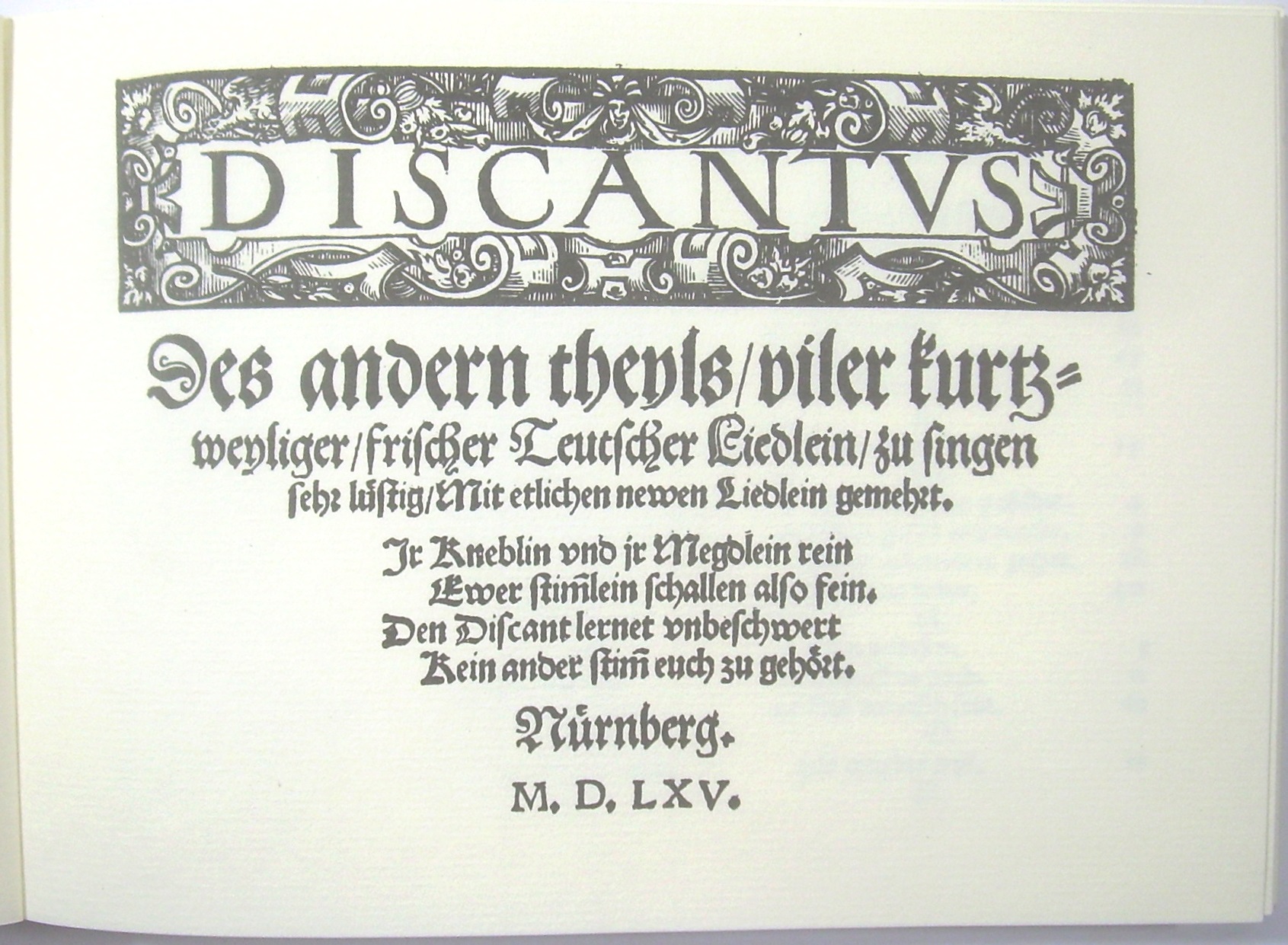 Des andern Theyls viler kurzweyliger frischer Teutscher Liedlein: zu singen sehr lustig; mit etlichen newen Liedlein gemehret. Nürnberg 1565 Faksimile