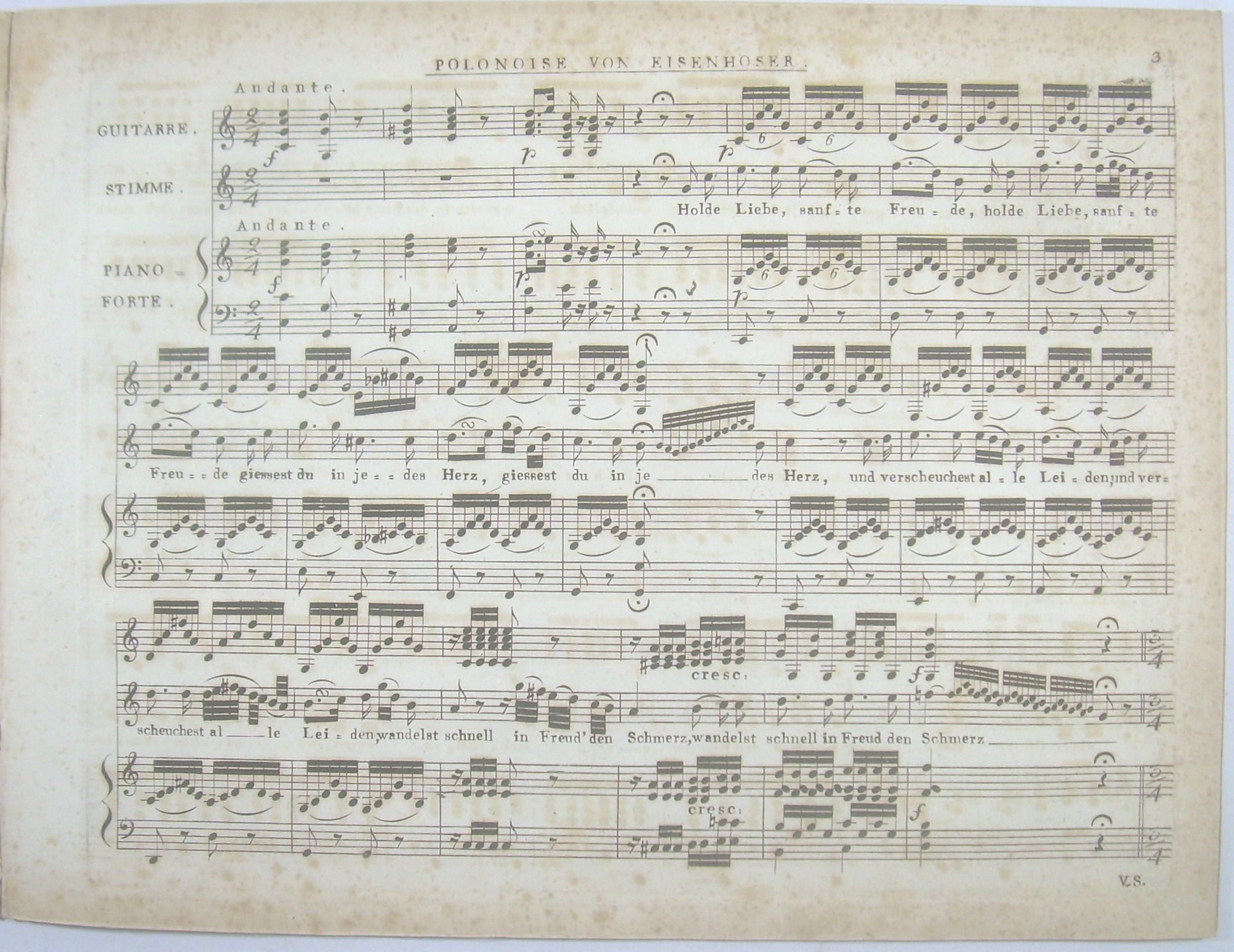 Polonoise "Holde Liebe, süsse Freuden" für Gesang und für Pianoforte oder Guitarre. Nach der Musik von Eisenhofer.