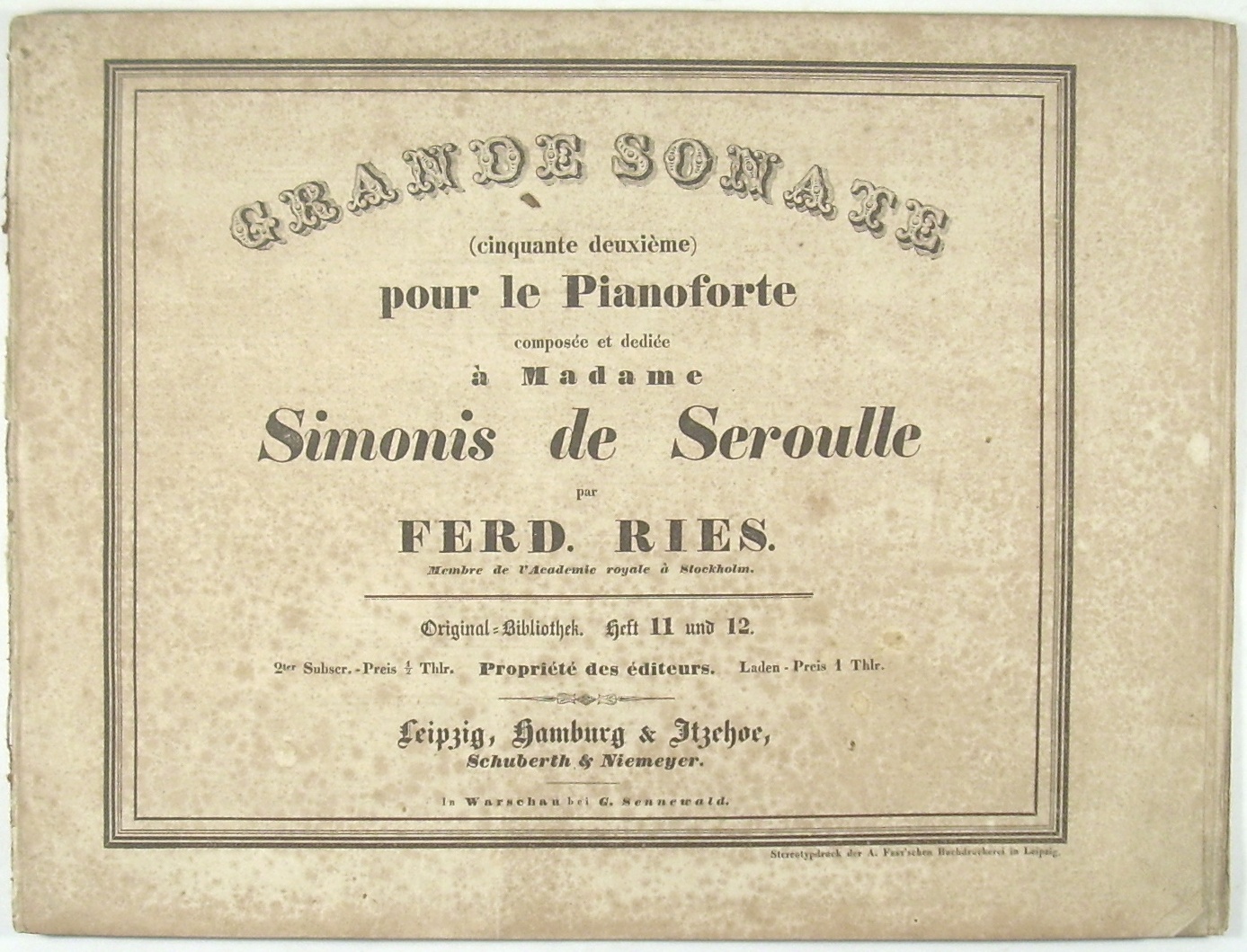 [Op. 176] Grande Sonate (cinquante deuxième) pour le Pianoforte composée et dediée à Madame Sinmons de Seroulle. = Original Bibliothek Heft 11 und 12.