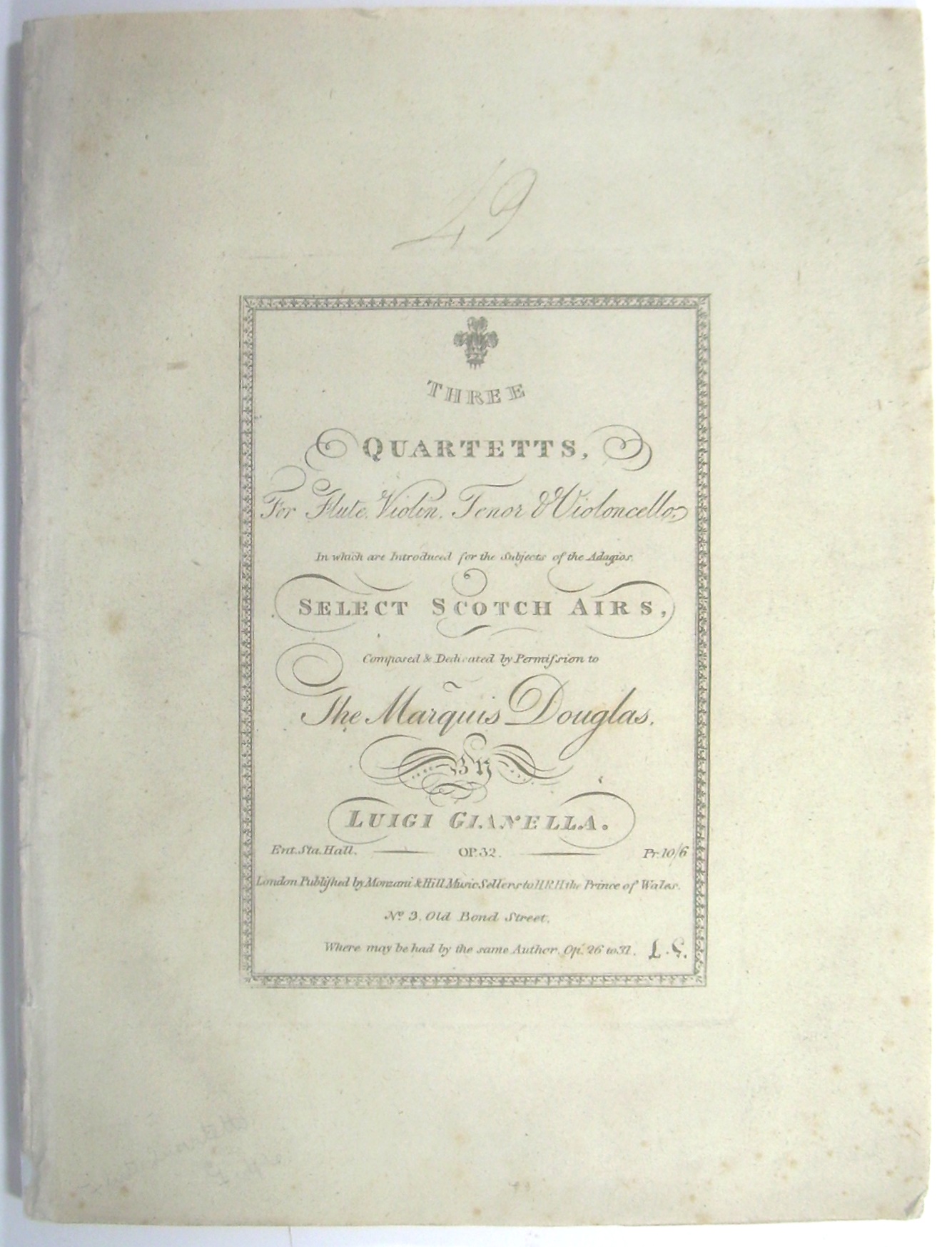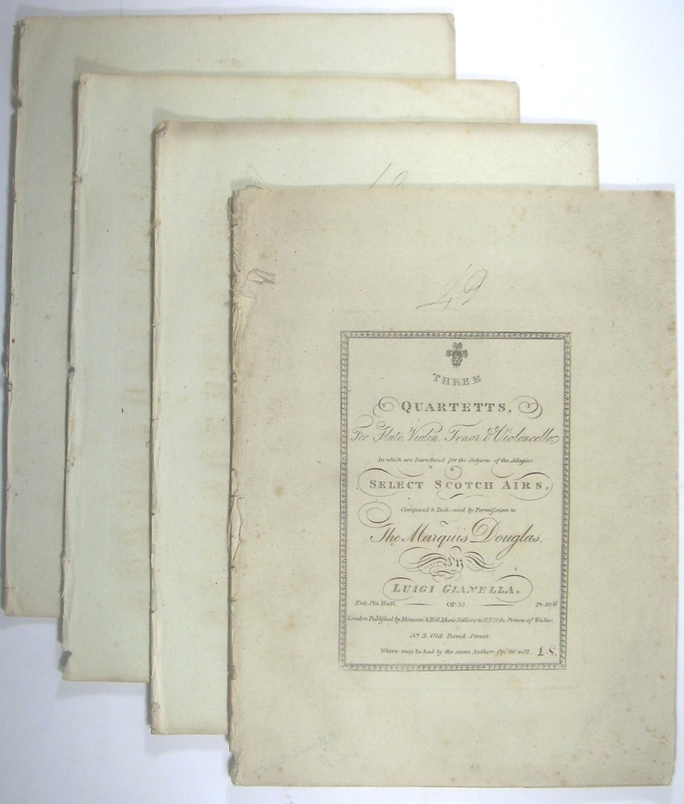 Three Quartetts, For Flute, Violin, Tenor & Violoncello. In which are Introduced for the subjects of the Adagios Select Scotch Airs. Op. 32.