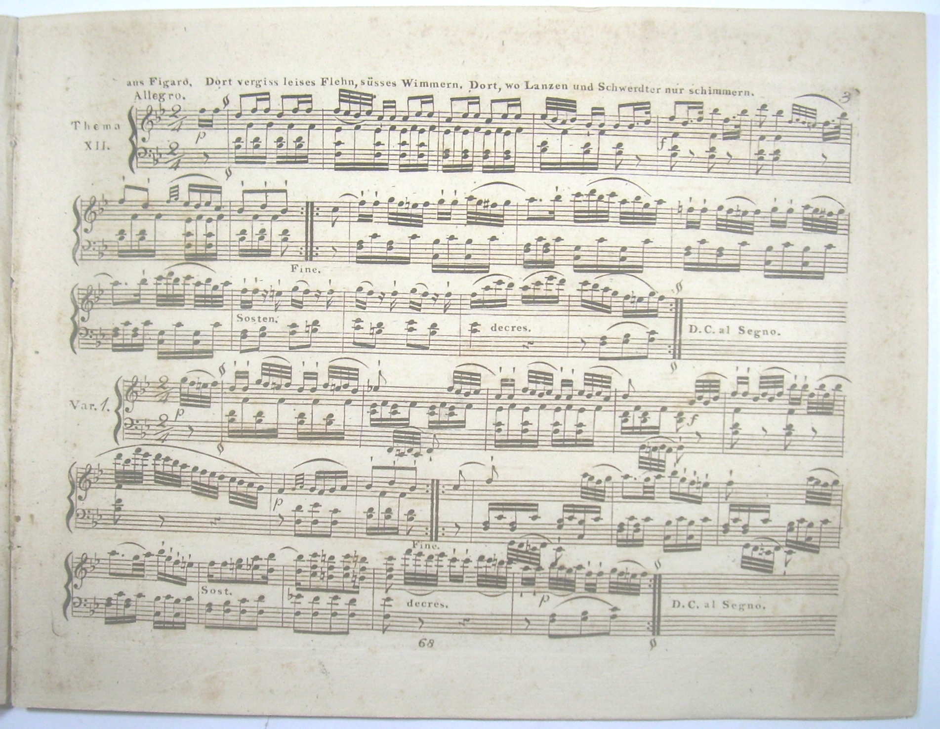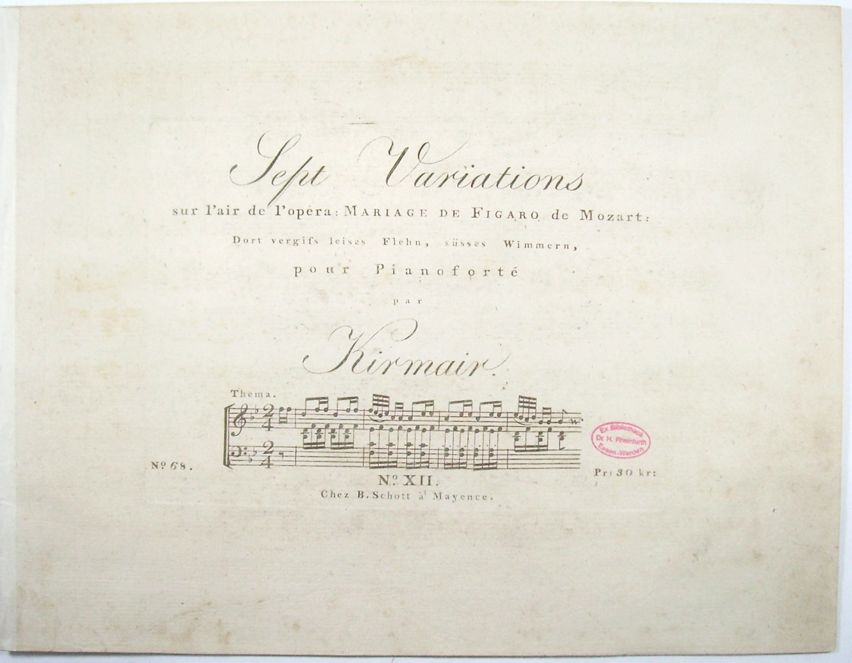 Sept Variations sur l'air de l'opéra: Mariage de Figaro de Mozart: "Dort vergiss leises Flehn, süsses Wimmern" pour Pianoforte.