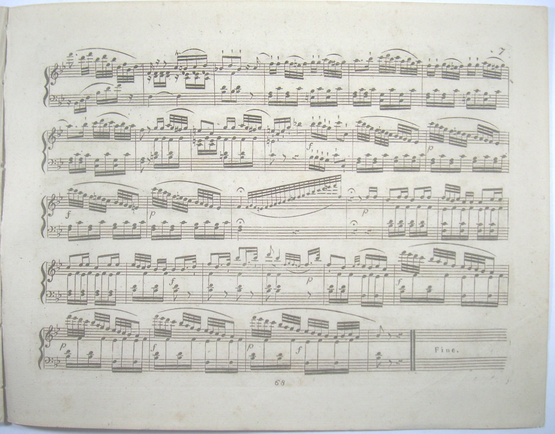 Querformat 25x33 cm, 7 Seiten gestochen Titel mit gedrucktem Musikincipit, Sammlerstempel "Rheinfurth", ausgebunden, Rücken verstärkt.