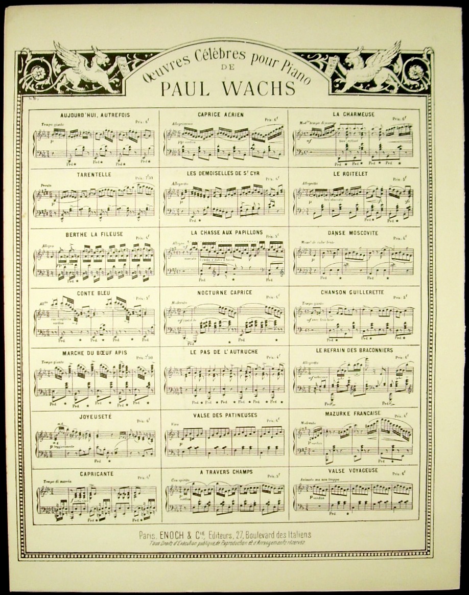 33x26 cm, 5 (1) Seiten, letzte Seite mit Verlagskatalog Klavierwerke von Paul Wachs.
