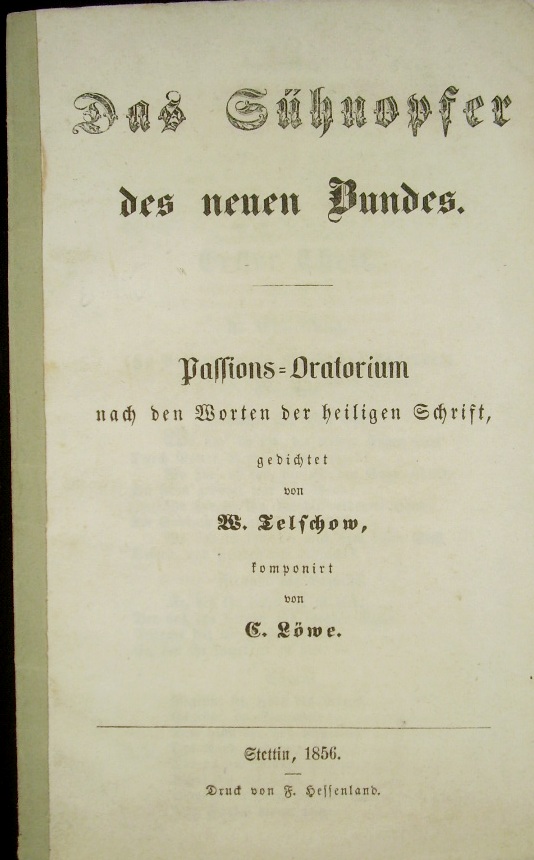 Kein Exemplar in WorldCat. Der Textdichter war vertretender Direktor der Ritterschaftsbank in Stettin und verfasste für Loewe mehrere Lied- und Oratorientexte. (Runze).