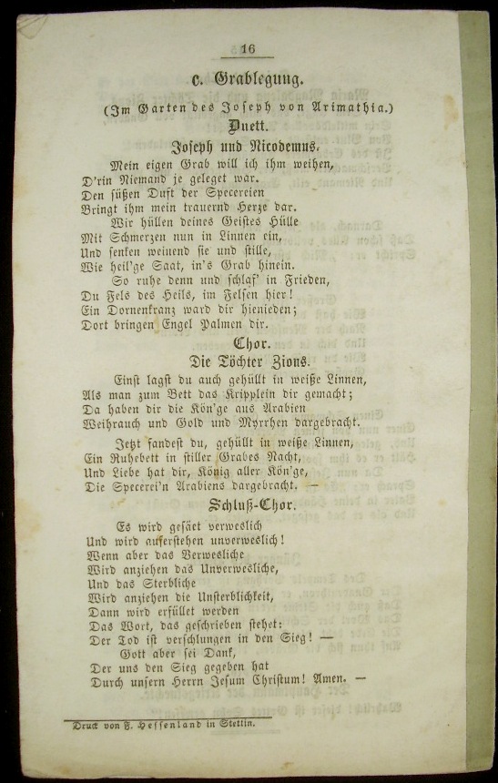 Das Sühnopfer des neuen Bundes. Passions=Oratorium nach den Worten der heiligen Schrift. [Textbuch].