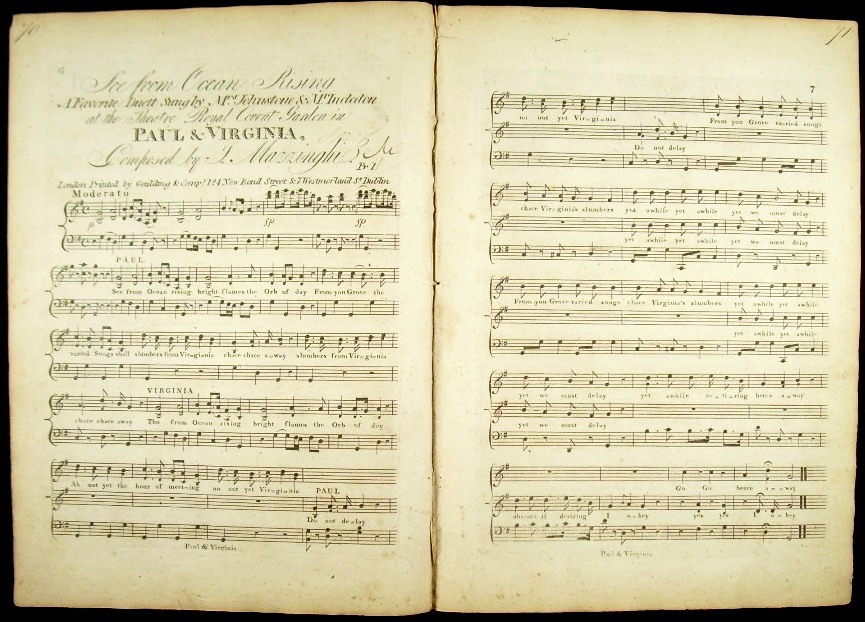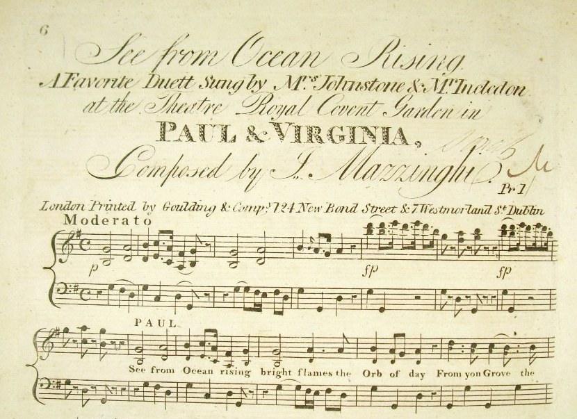 See from Ocean rising. A favorite duett sung by Mrs. Johnstone & Mr. Incledon at the Theatre Royal Covent Garden in Paul and Virginia.