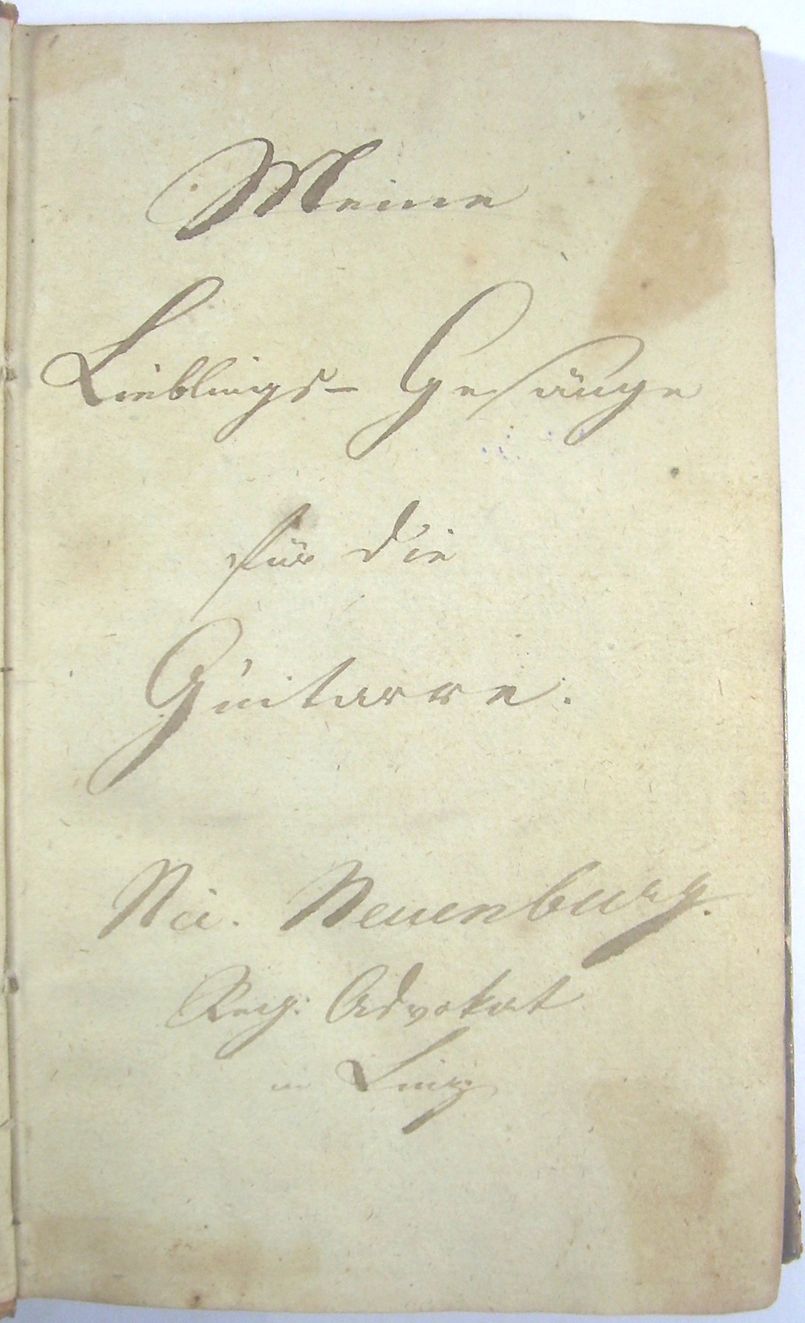 Manuskript - Meine Lieblingsgesänge für die Guitarre. N. Neuenburg, Reg. Advokat in Linz. [Textsammlung ohne Noten].