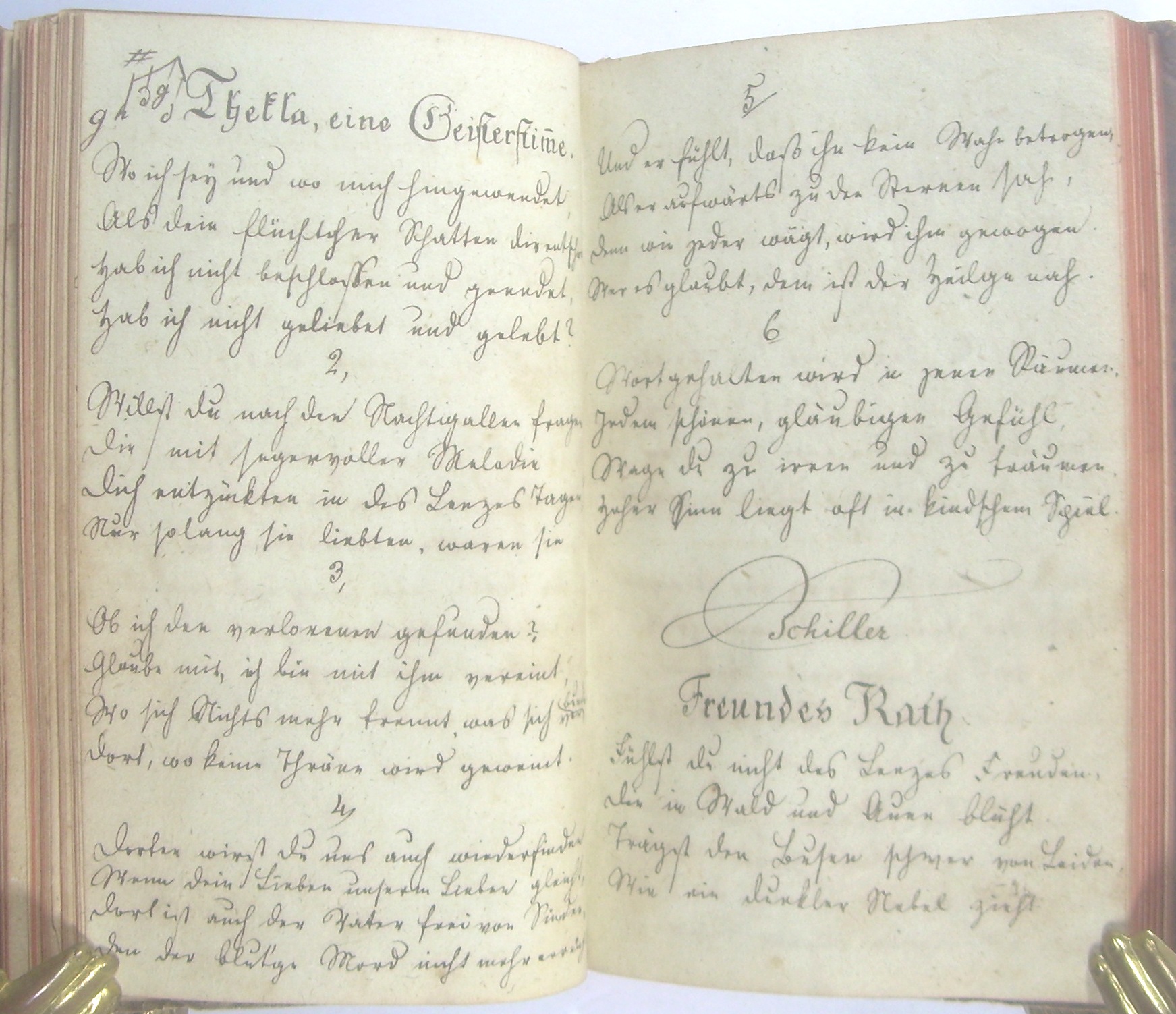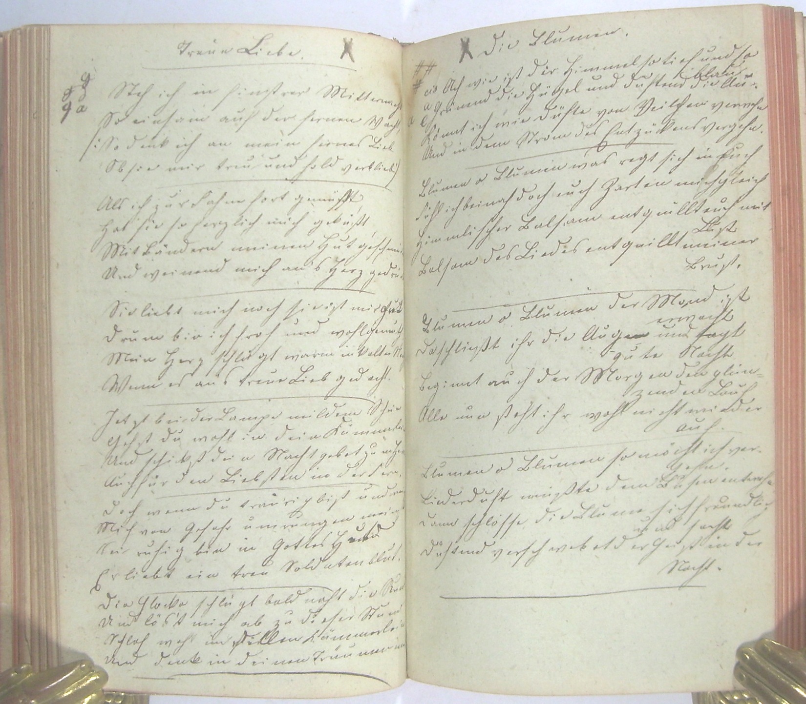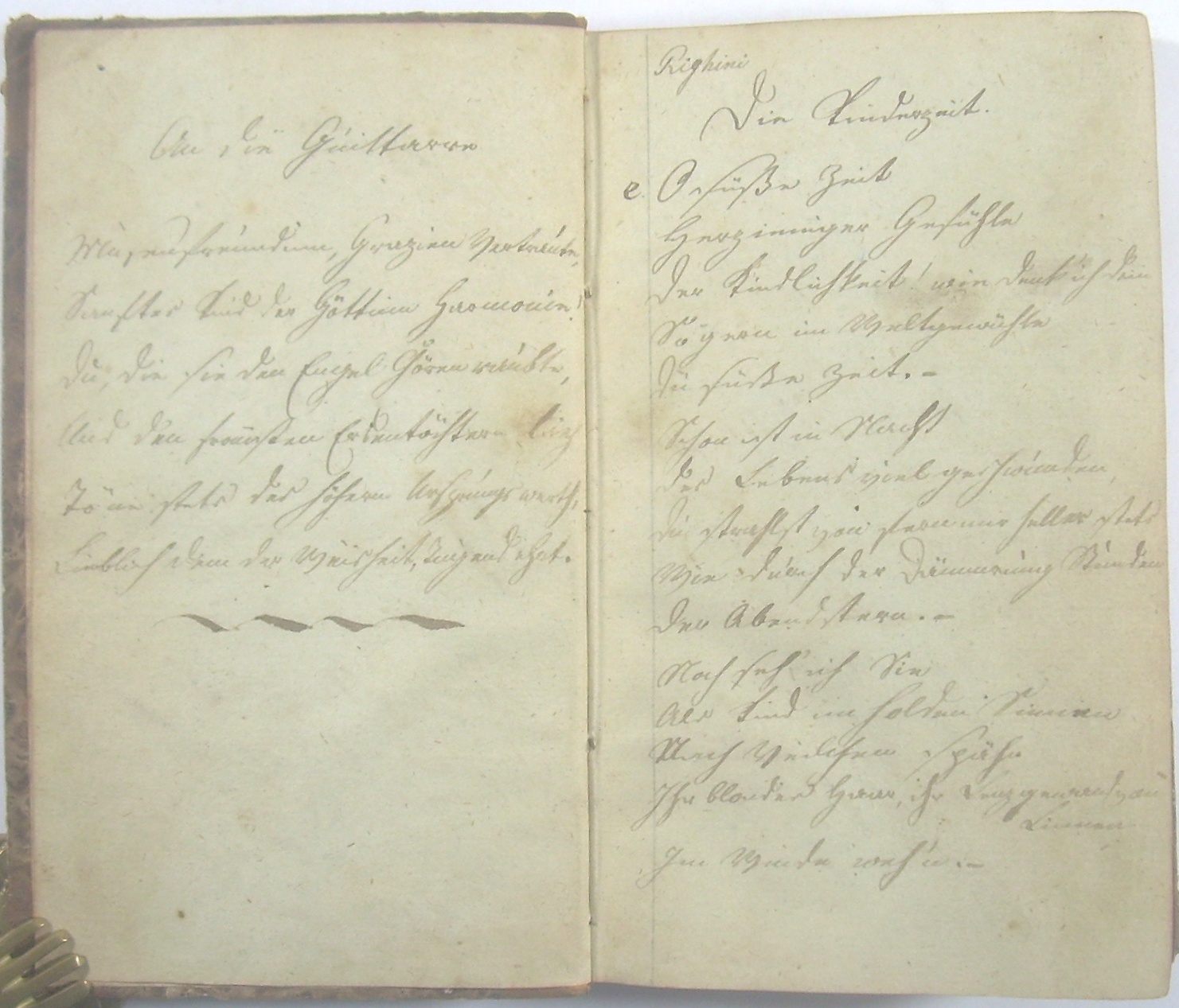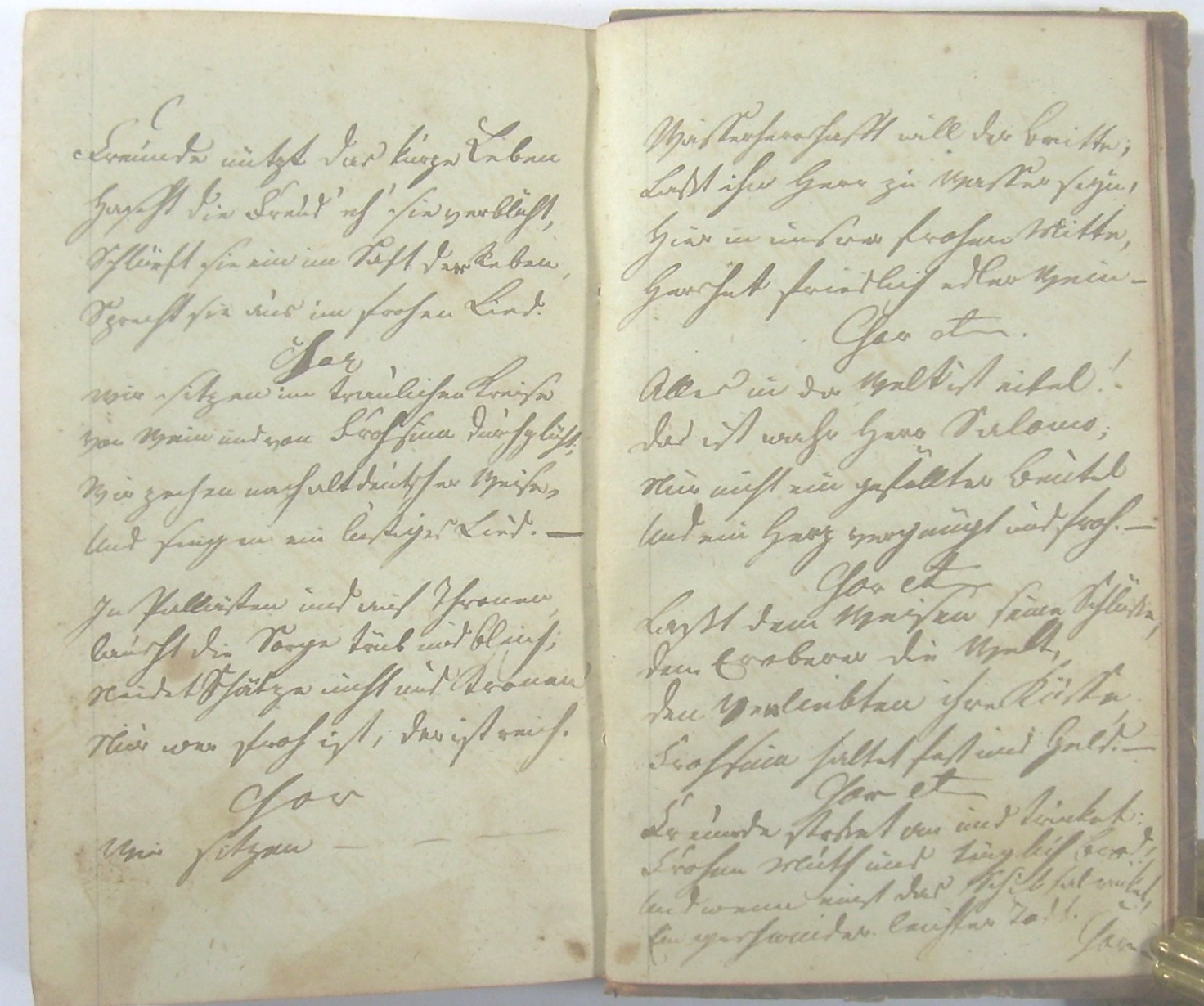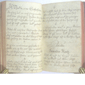 16x10 cm, Halbledereinband mit Marmorpapierbezug, berieben, bestoßen, ca. 60 beschriebene Blätter, dazwischen ca. 50 leere Blätter.