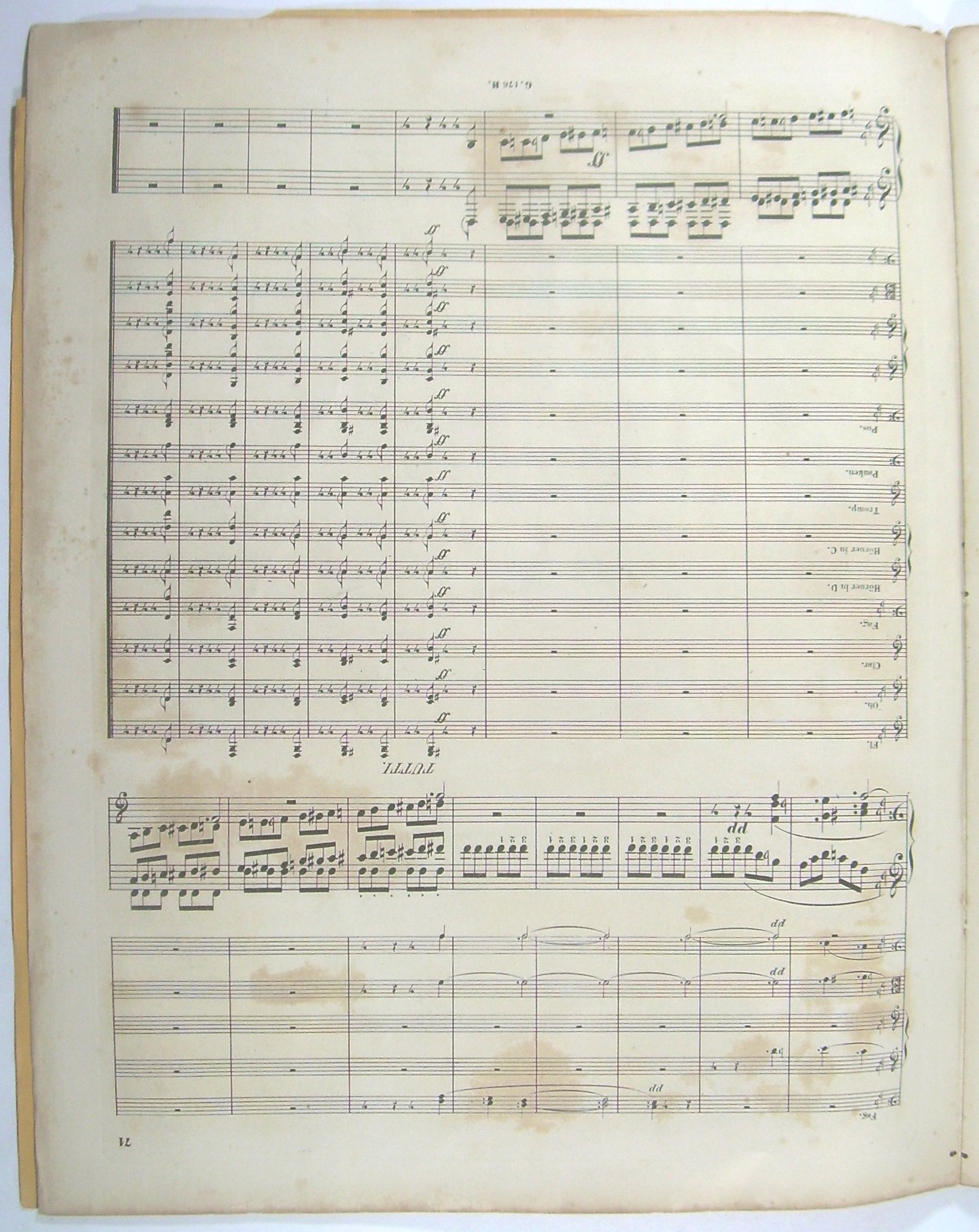 "34x27 cm, 71 Seiten gestochen, Titelblatt Original Impressum und Preis mit Händler Stempel ""Schlesinger'sche Buch & Musikhandlung"" aktualisiert. Oranger Umschlag (nicht original). - Der Klavierauszug in ""Neue genau revidierte Ausgabe"" (Carl Haslinger, PN 5171, [1877]) mit zahlreichen handschriftlichen Einträgen von Ernst Rudorff in Vorbereitung seiner Ausgabe für 2 Klaviere."