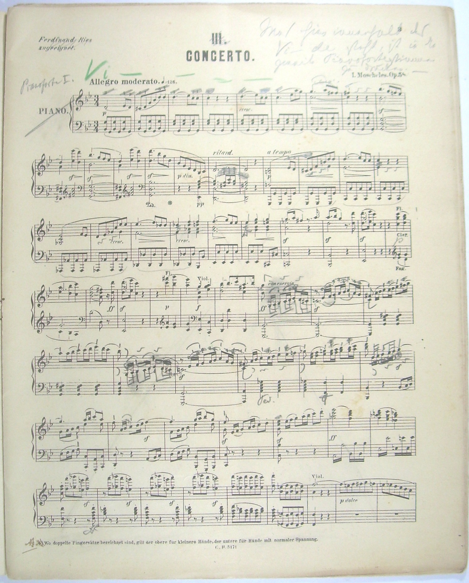 "[Op 58] Drittes Concert (in G moll) für Pianoforte mit Begleitung des Orchesters. Op. 58. Neue Partitur-Ausgabe. - Beiliegt: 1. Klavierauszug, Haslinger 5171 Neue Ausgabe, mit zahlreichen handschriftlichen Einträgen von Ernst Rudorff für seine Bearbeitung für 2 Klaviere."