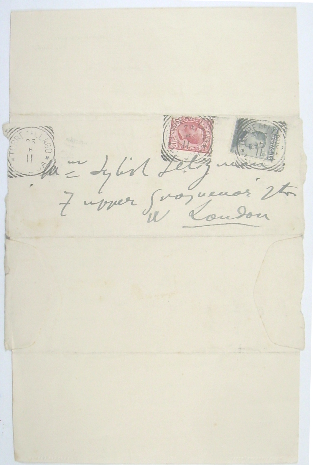 Eigenhändiger Brief an Sybil Seligman aus Torre del Lago (Poststempel 23.06.1911) über einen autographen Brief von Queen Alexandra mit wertvollem Geschenk an ihn.