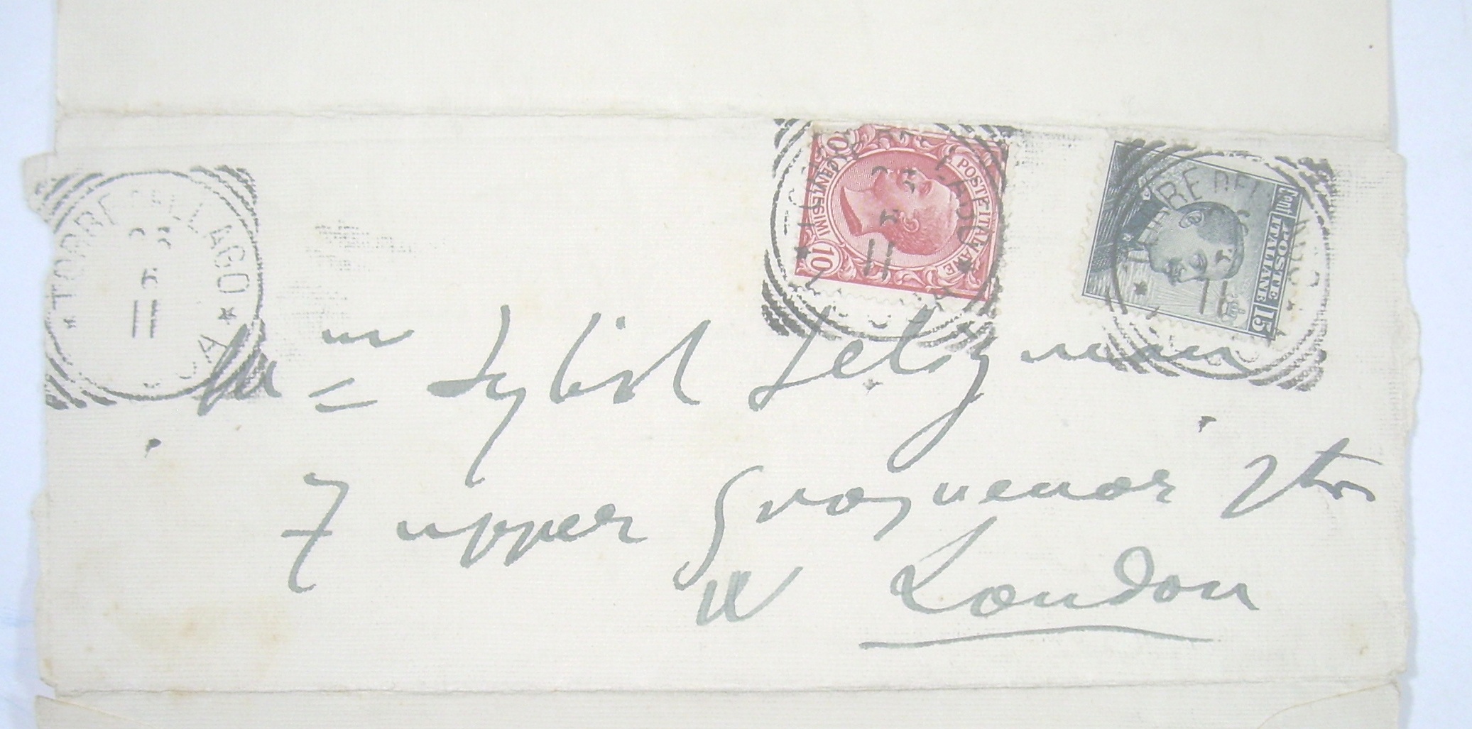 Puccini berichtet seiner langjährigen Vertrauten und intimen Freundin Sybil Seligman (1868-1936) von seiner Rückkehr nach Torre del Lago "in die Pisanische Hitze", und dass er hier einen eigenhändigen, sehr schmeichelhaften Brief der Queen Alexandra mit einer eleganten, mit Diamanten und Rubinen bestückten Anstecknadel erhalten hat. Puccini hatte Queen Alexandra den Klavierauszug von "La fanciulla del West" ("Das Mädchen aus dem goldenen Westen") gewidmet. Die Anregung zur Komposition der Oper verdankte Puccini Sybil Seligman. Die Uraufführung der Oper fand 1910 in New York unter Toscanini statt und war ein sensationeller Erfolg (45 Vorhänge!). - "...Ebbi un lettera autografa dell Regina Alexandra - proprio flatteuse per me - molto un molto gentile [...] c’era unito un grazioso spillo di diamanti e rubini." - Der Brief in englischer Übersetzung in Vincent Seligman, Puccini among friends" (2013, S. 179).