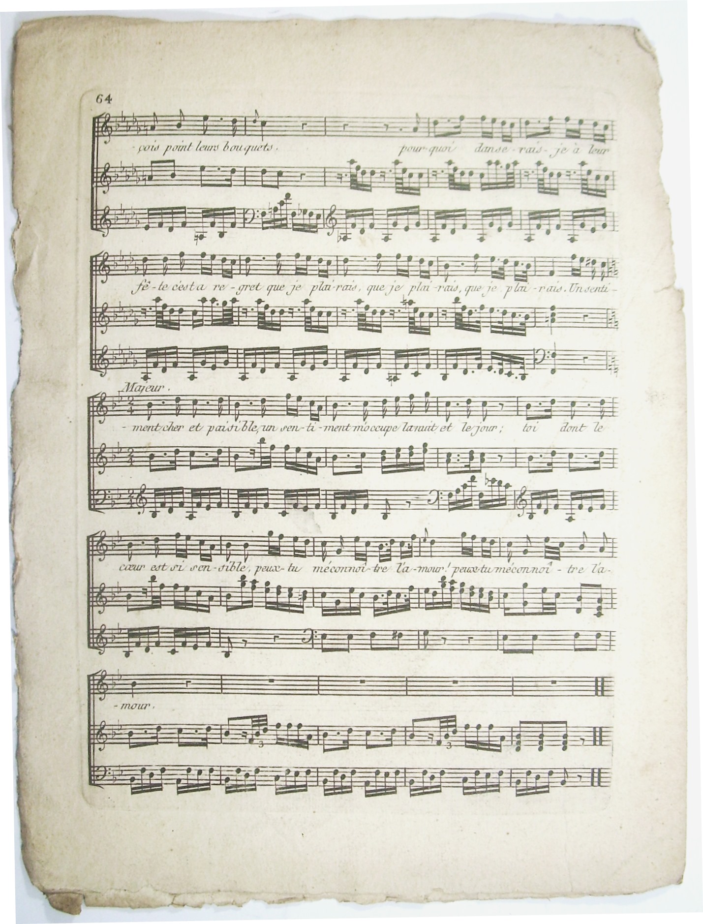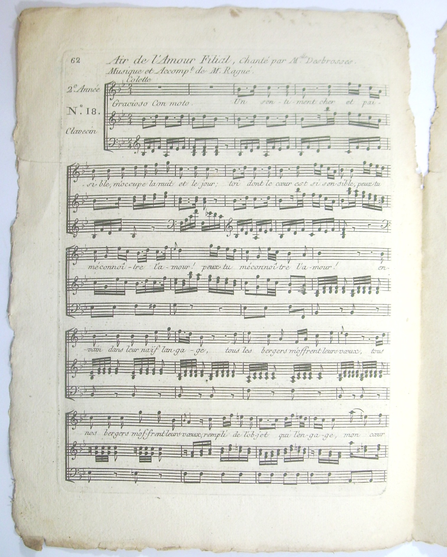 "Un sentiment cher et paissible." - Air de l'Amour Filial, Chanté par par Mlle. Desbrosse. = Feuilles de Terpsichore ou Journal pour le Clavecin ..." 2e Année No. 18.