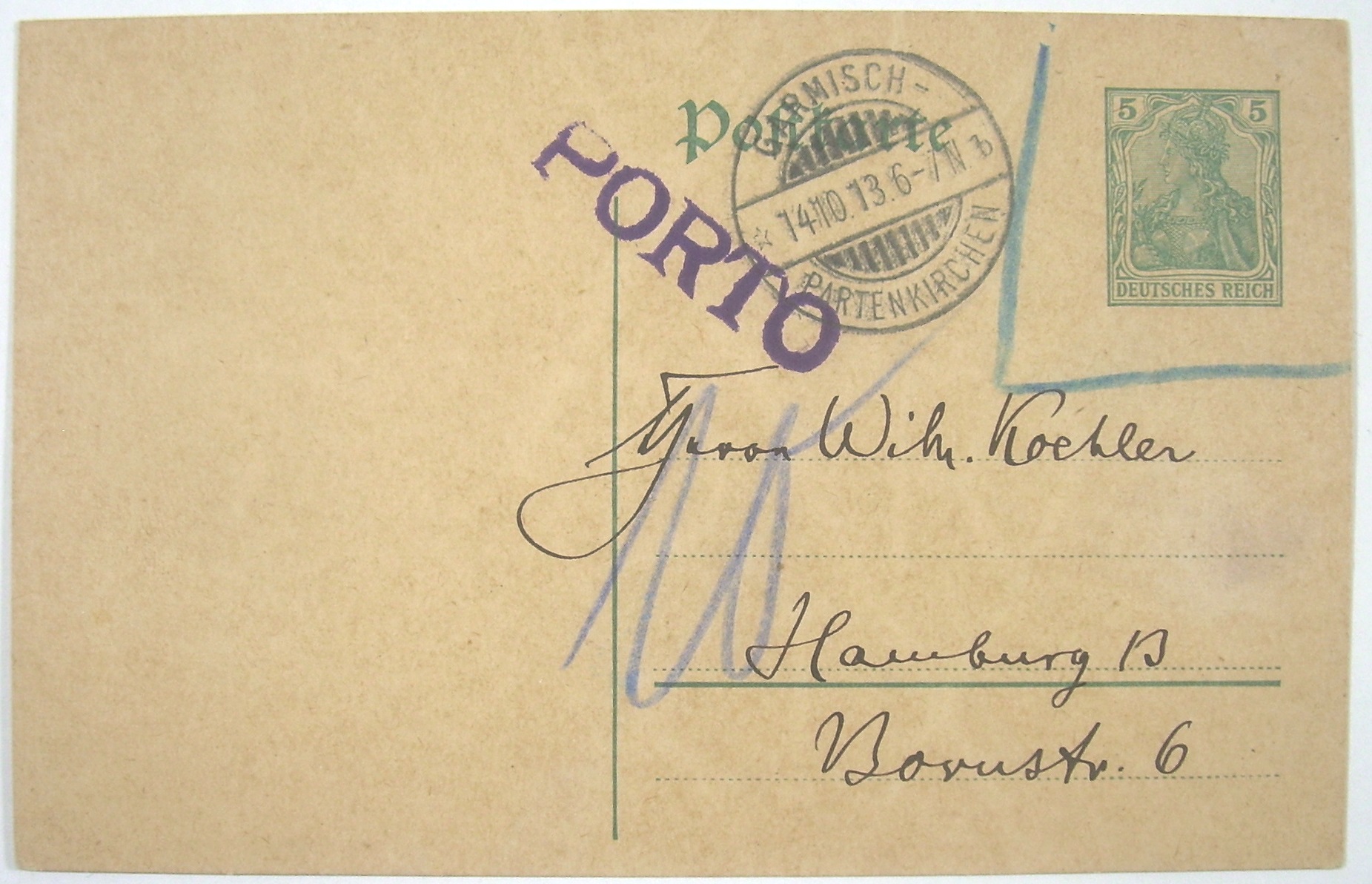 Postkarte 14x9 cm, gelaufen, gestempelt, Adresse von anderer Hand (vermutlich vom Adressaten W. Köhler, der wahrscheinlich die voradressierte portofreie Antwortkarte seinem Opernvorschlag beilegte).