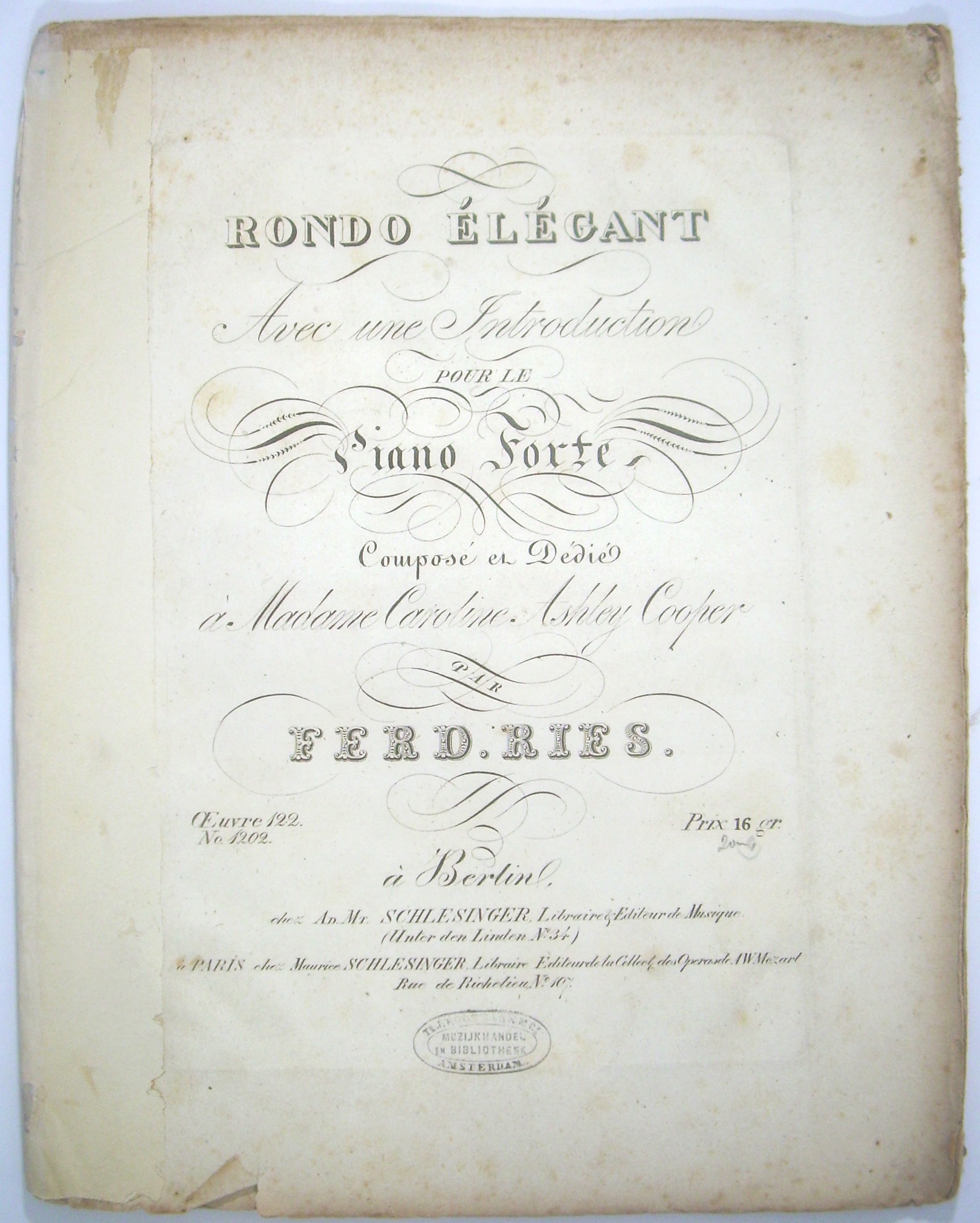 [Op. 122] Rondo élégant avec une introduction pour le Piano Forte ... dédié à Madame Caroline Ashley Cooper. Oeuvre 122.