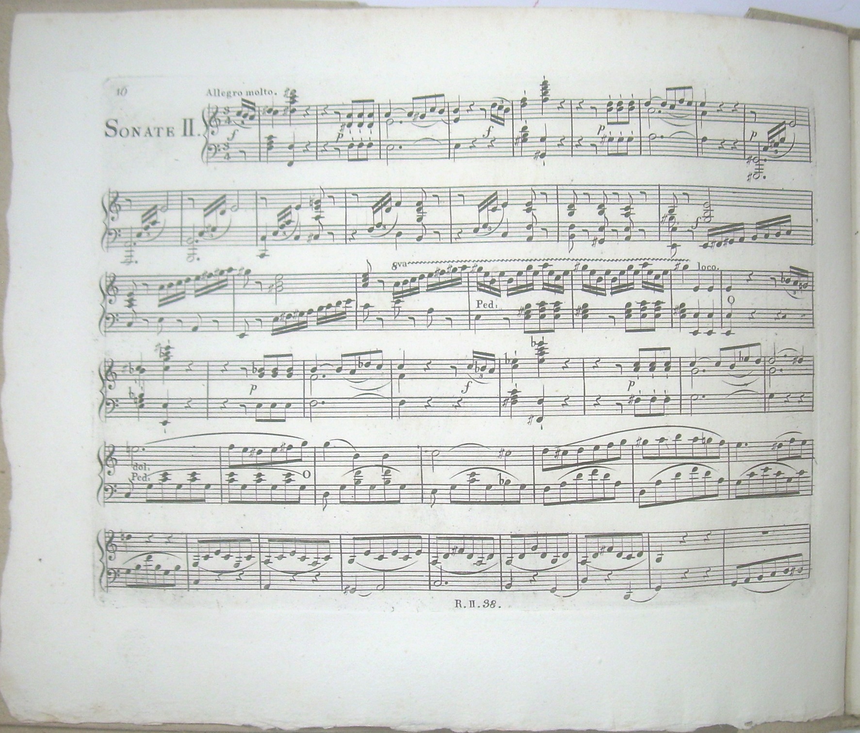 [Op. 38, op. 16] Trois Sonates pour le Piano et Violon ... dediées à son ami N. Simrock. Oeuv. 38. No 1[-3]. Klavierstimme. - Beiliegt, irrtümlich in gleichem Umschlag: [Trois Sonates pour le Piano-Forte, avec Violon obligé ... oeuvre 16] Violinstimme.