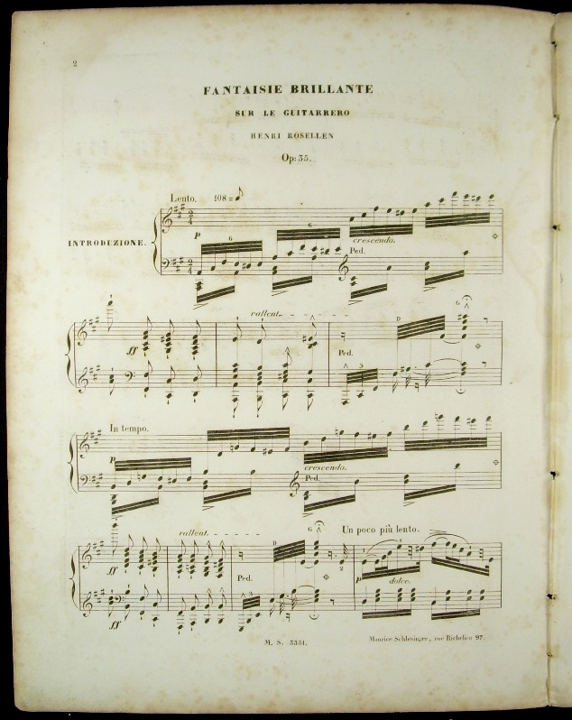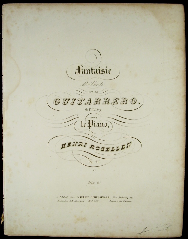 Die erste der 8 "Fantaisies Brillantes", die Henri Rosellen (1811-1876), über Opern von Halevy, bei dem er studiert hatte schrieb (op. 35, 56, 71, 86, 96, 126, 127, 136). - Diese Komposition nicht in WorldCat/KVK.