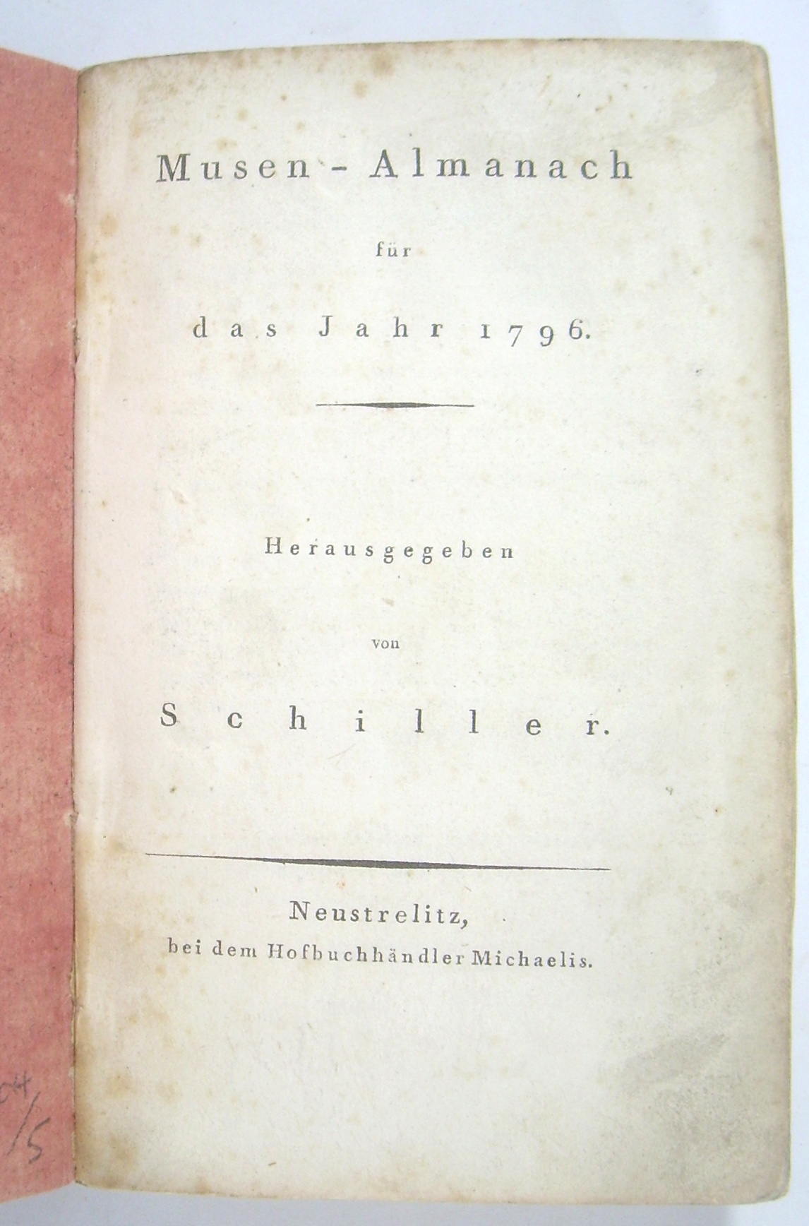 Der erste Jahrgang von Schillers berühmten Musen-Almanach mit allen (oft fehlenden) Musikbeilagen, bis auf das fehlende Frontispiz komplett in ausgezeichnetem Zustand.