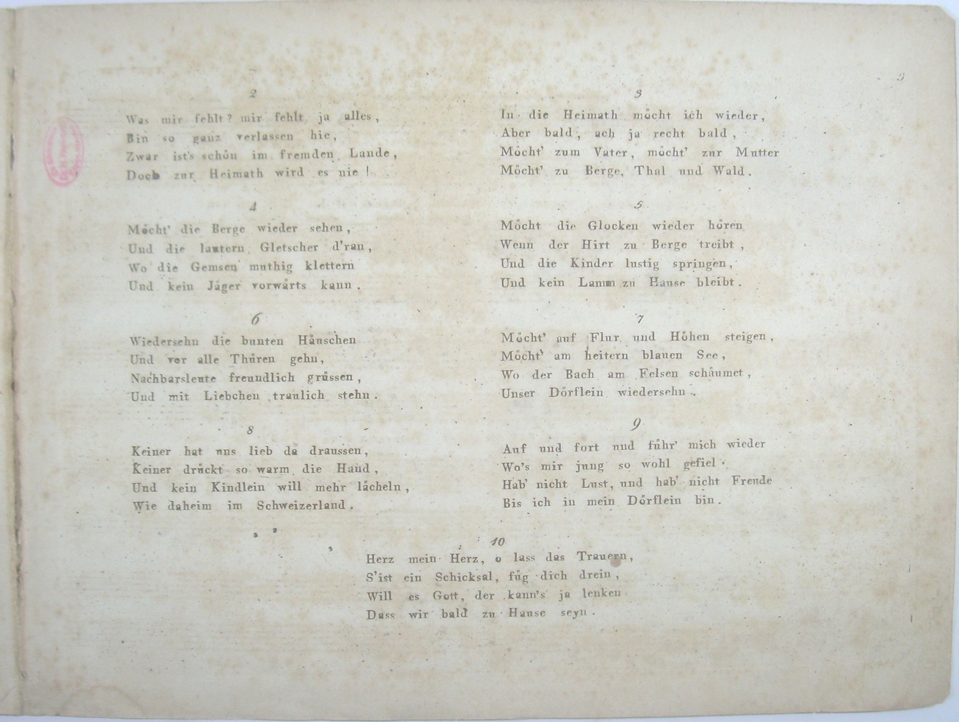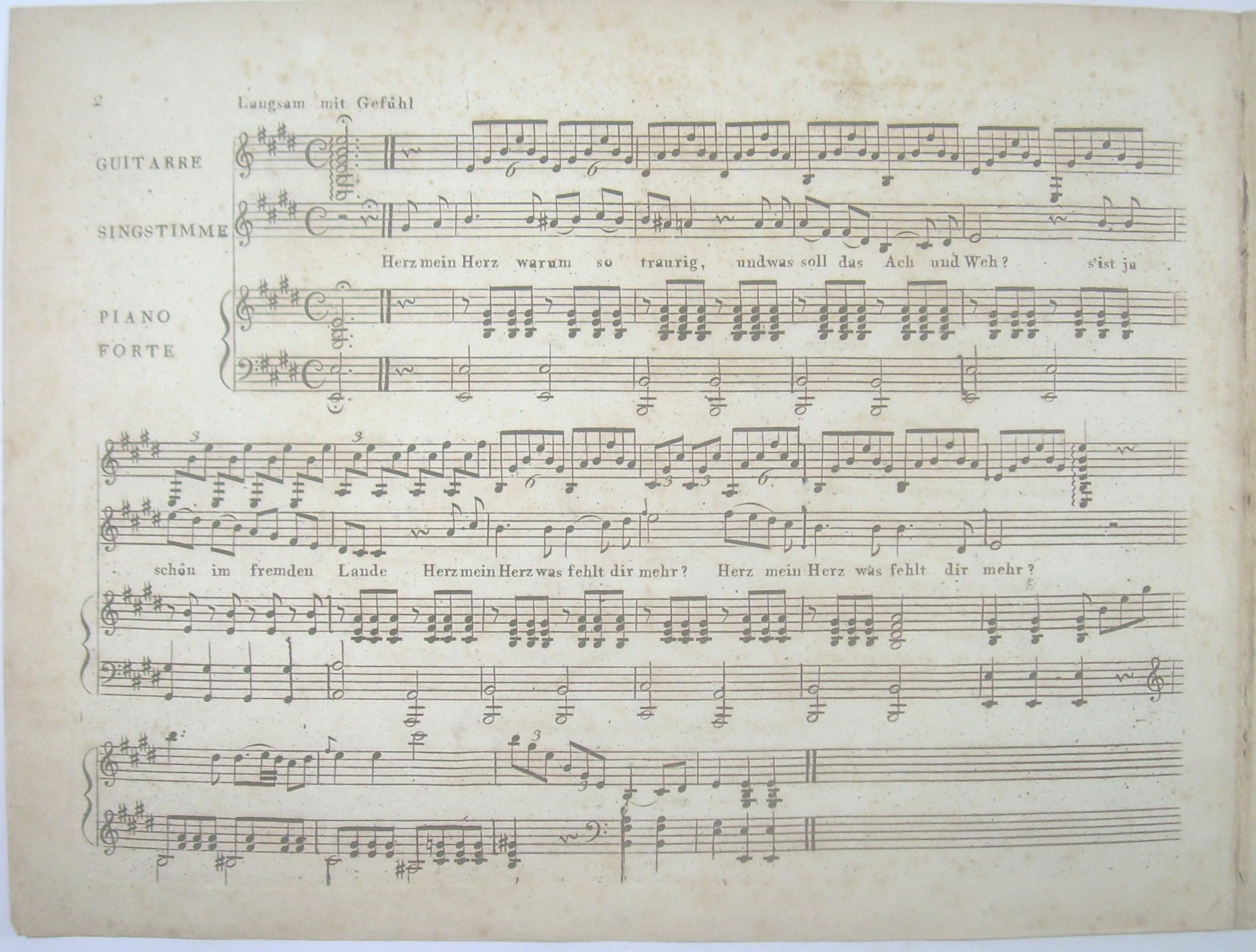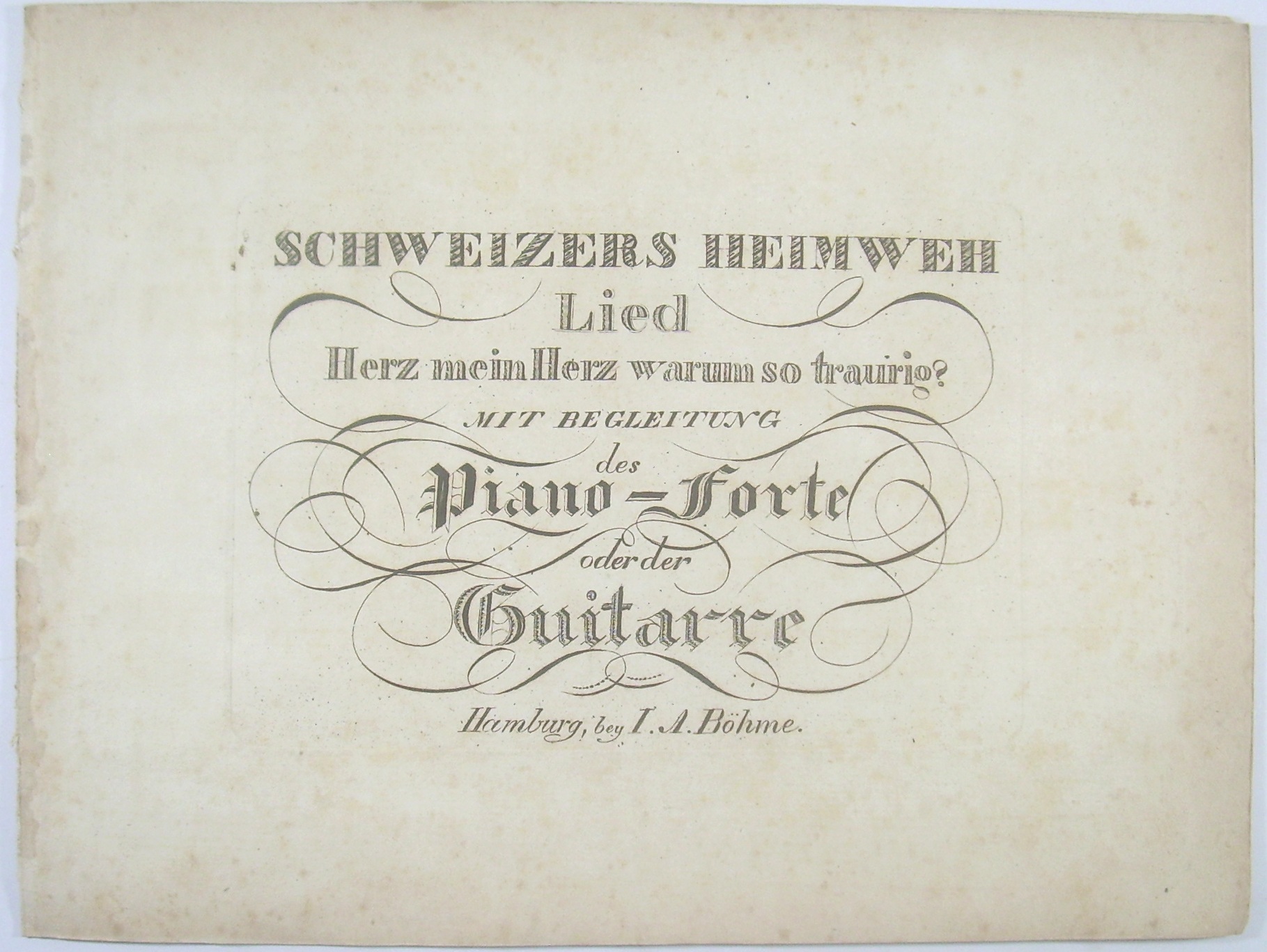 Schweizers Heimweh. Lied "Herz mein Herz warum so traurig?" mit Begleitung des Piano-Forte oder der Guitarre.