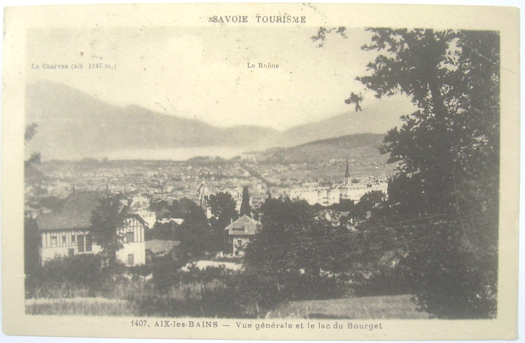 "9x14 cm, Text in französisch und deutsch. Rückseite mit der Ansicht von Aix les Bains."