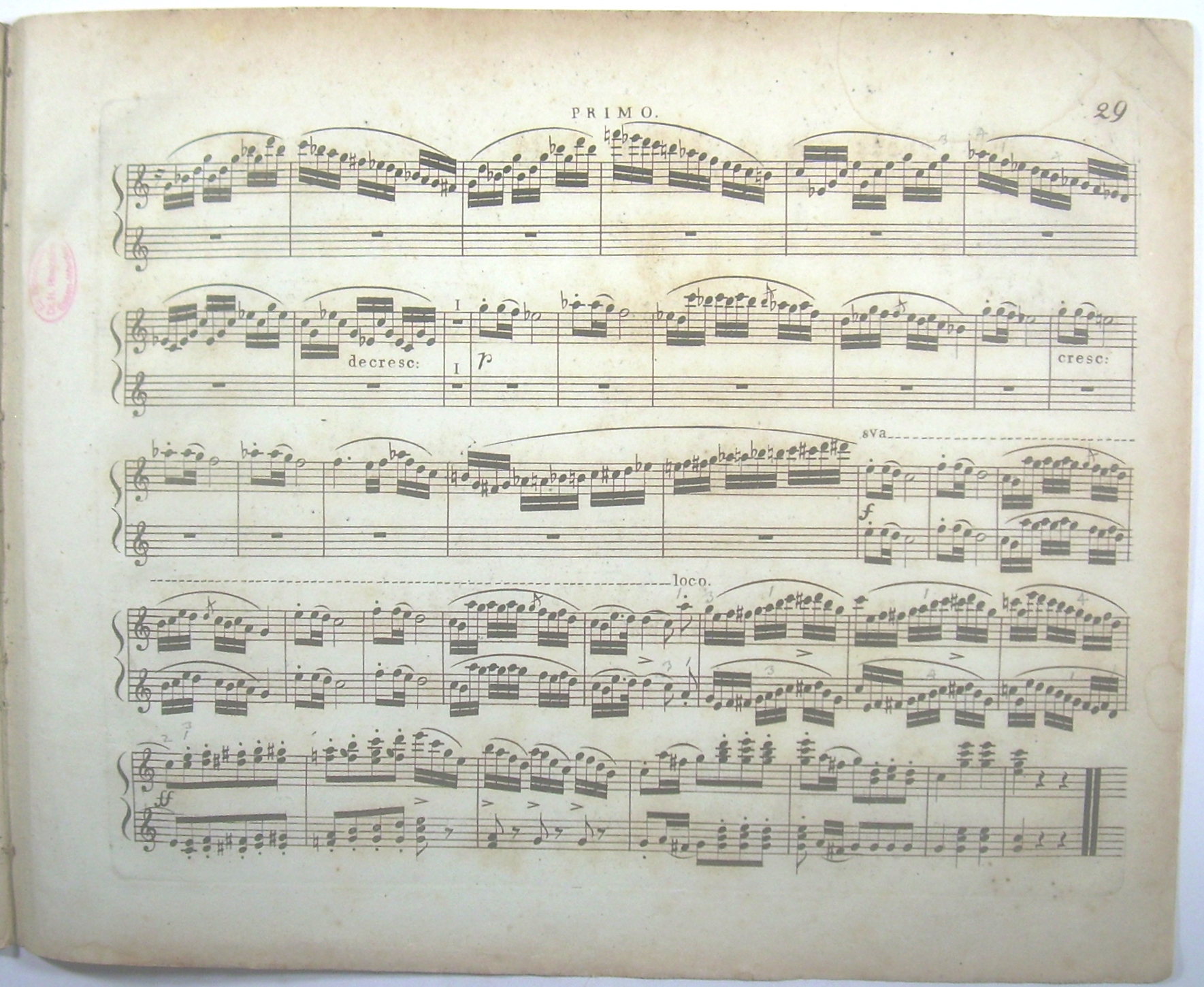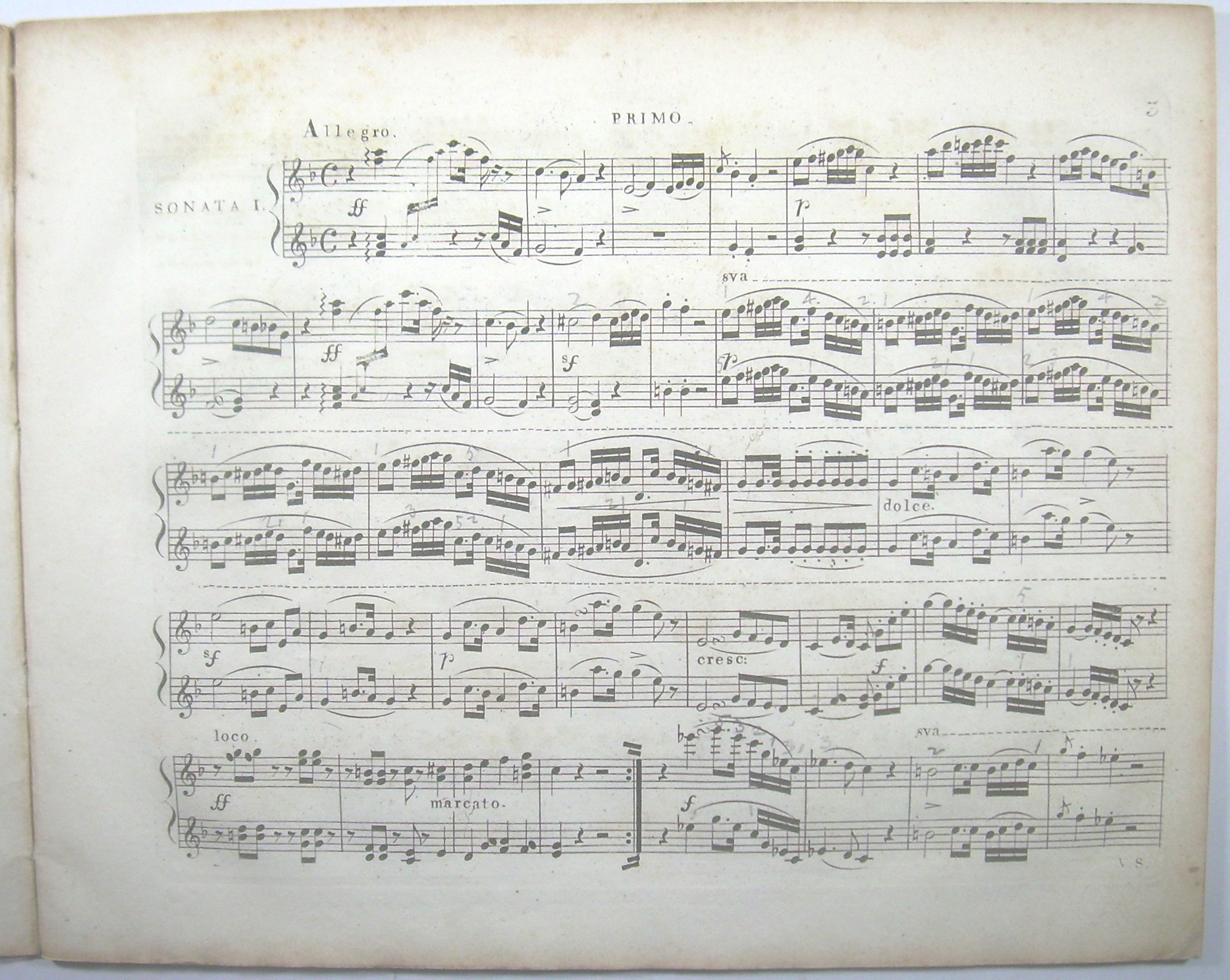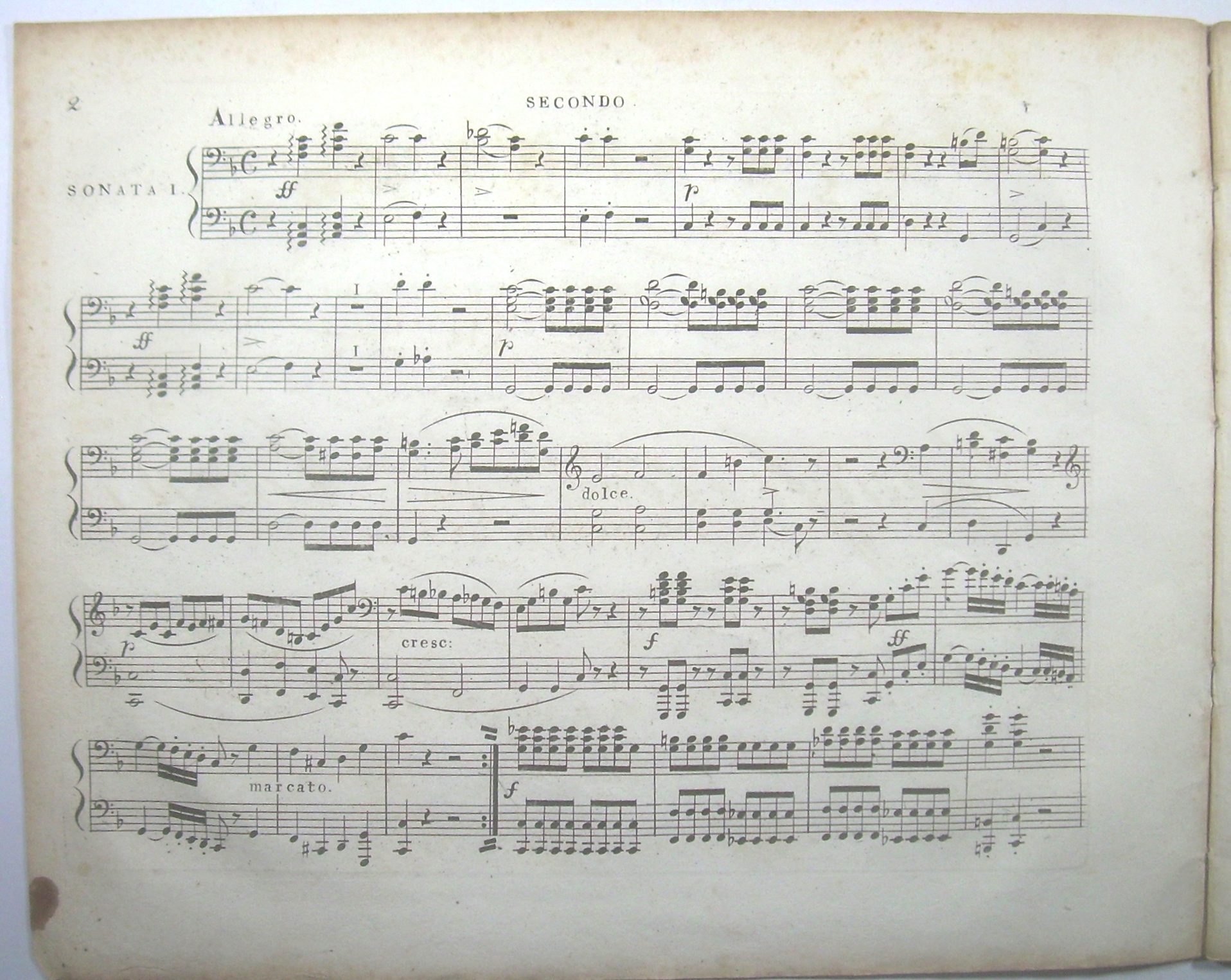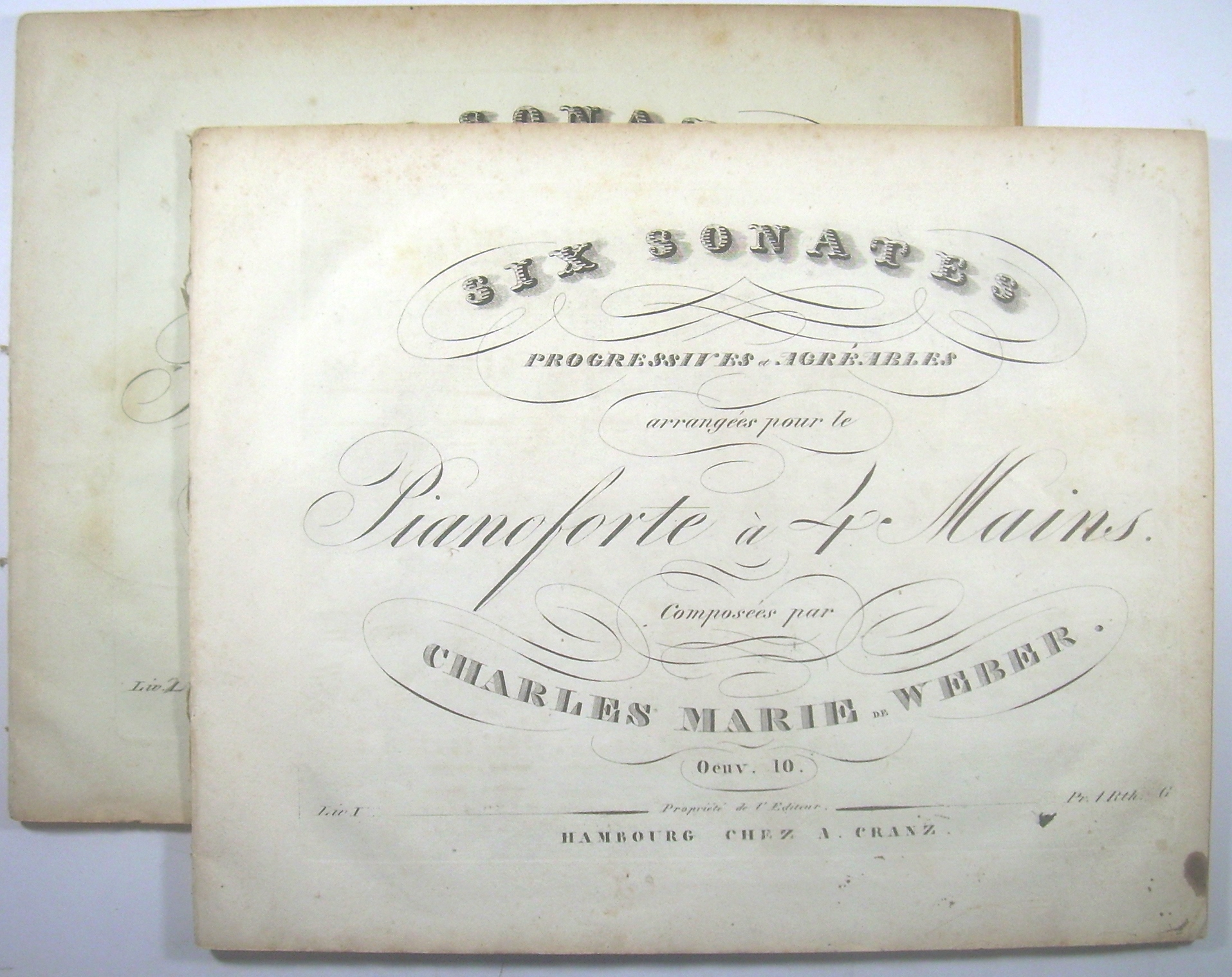 Seltenes Arrangement der "Six Sonates progressives pour le piano-Forté avec Violon obligé. Composées et dediées aux amateurs. Oeuvre 10", die Weber 1810 komponierte. Die Erstausgabe erschien 1811 bei Simrock, nachdem André sie mit der Begründung zurückgewiesen hatte, "sie seyen zu gut". " Noch ist hier des im Allgemeinen höchst zweckmässigen und wirkungsvollen Arrangements zu vier Händen von C. Czerny (bey Cranz in Hamburg) zu gedenken". (Jähns S. 122).