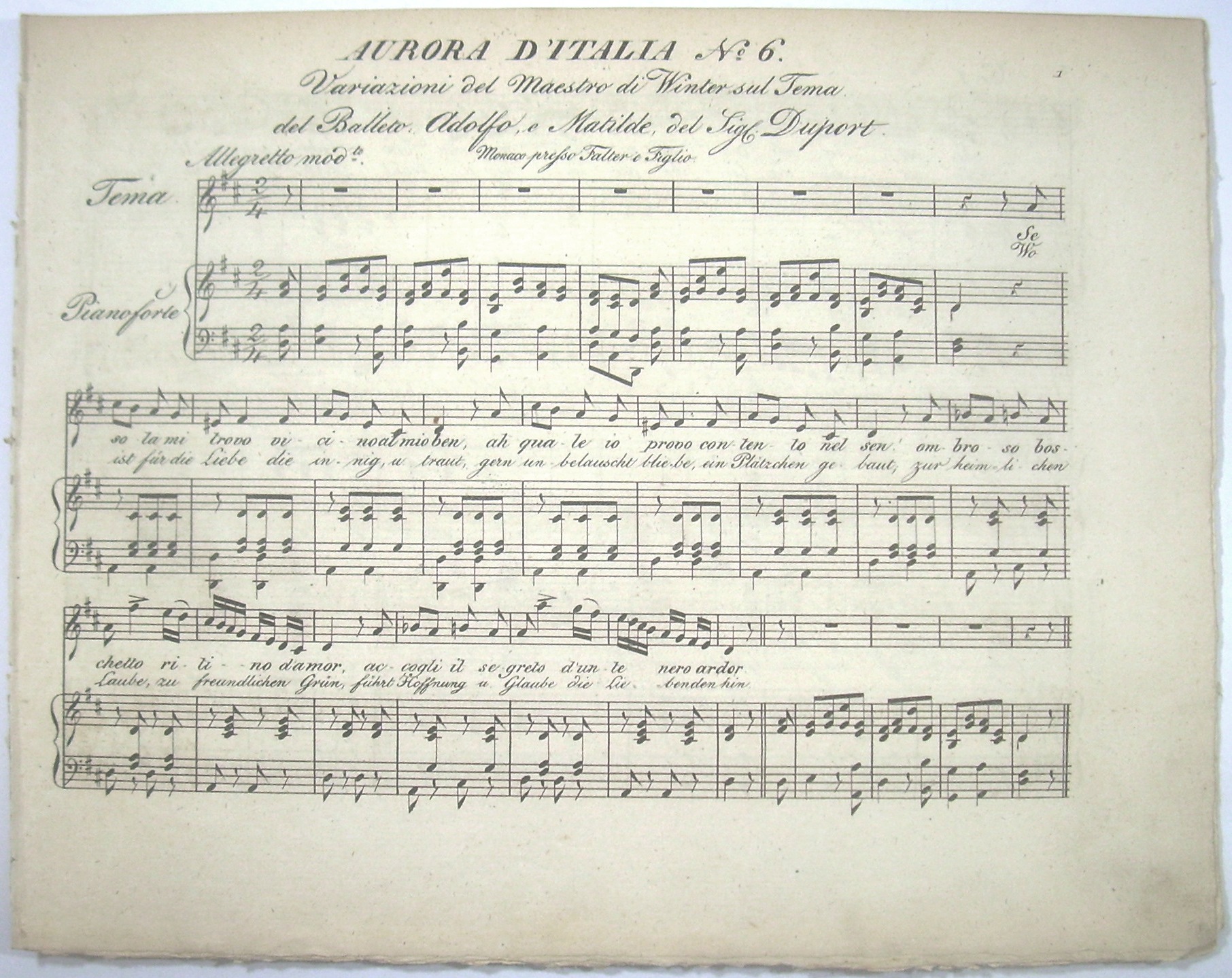 Aurora d'Italia No 6. - Variazioni del Maestro di Winter sul Tema del Balleto: Adolfo, e Matilde, del Sig Duport.