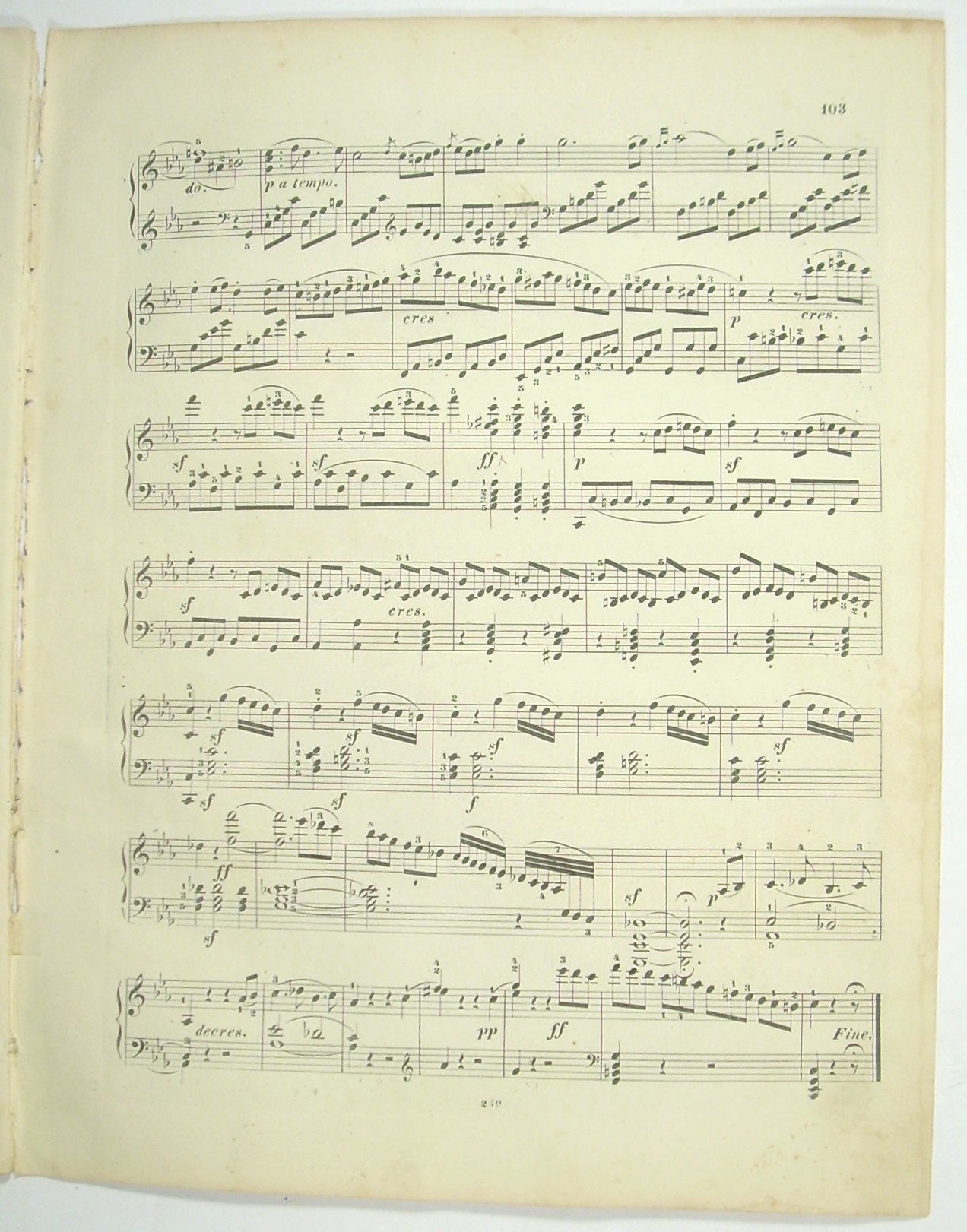 32x25 cm, Reihentitel, S. 89-103. Noten gestochen, Titelseite lithographiert, ausgebunden, die äußeren Blätter im Falz rissig, gering fleckig.
