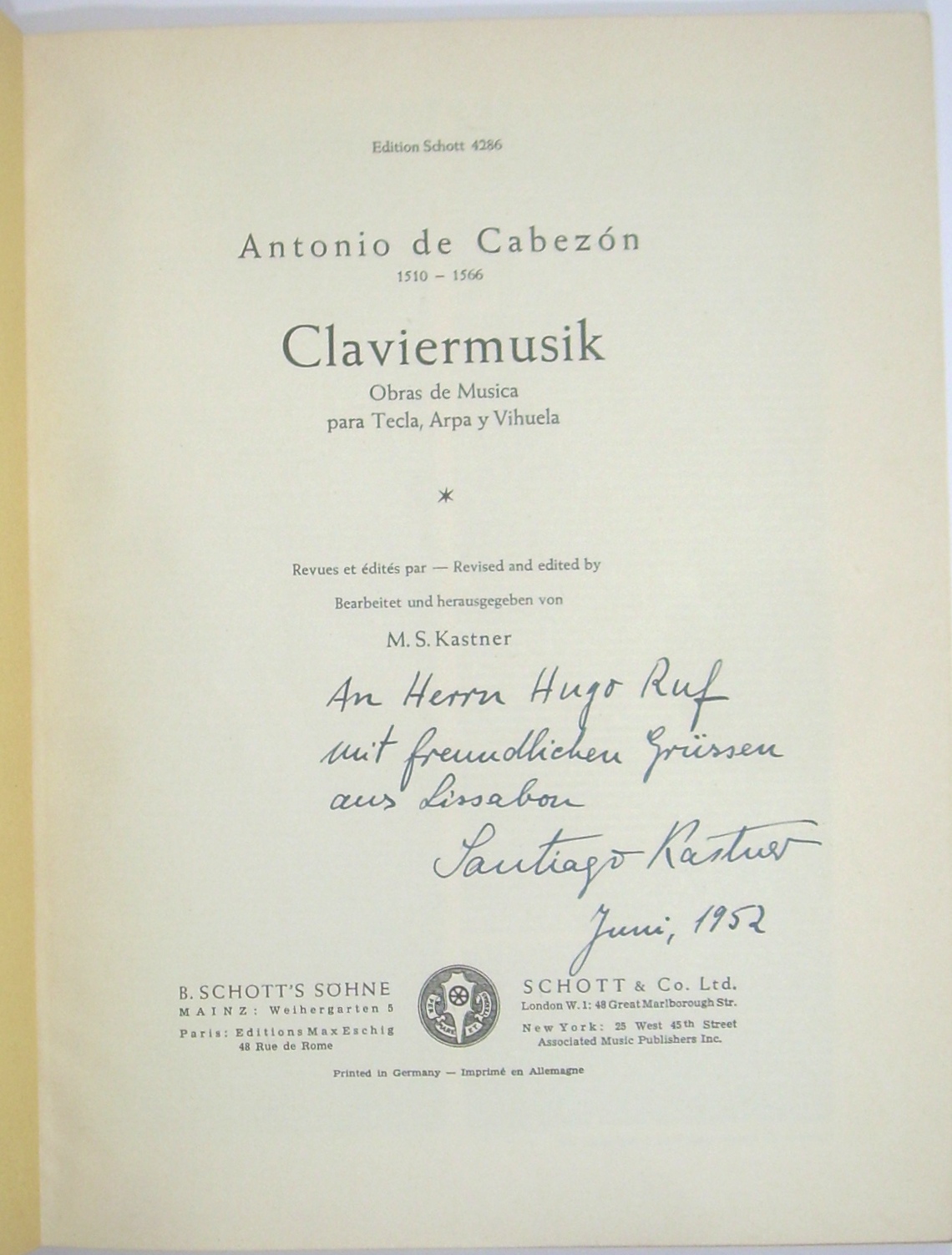 Bearbeitet und herausgegeben von Macario Santiago Kastner. - Aus der Bibliothek von Hugo Ruf (1925-1999), Professor für Alte Musik in Köln.