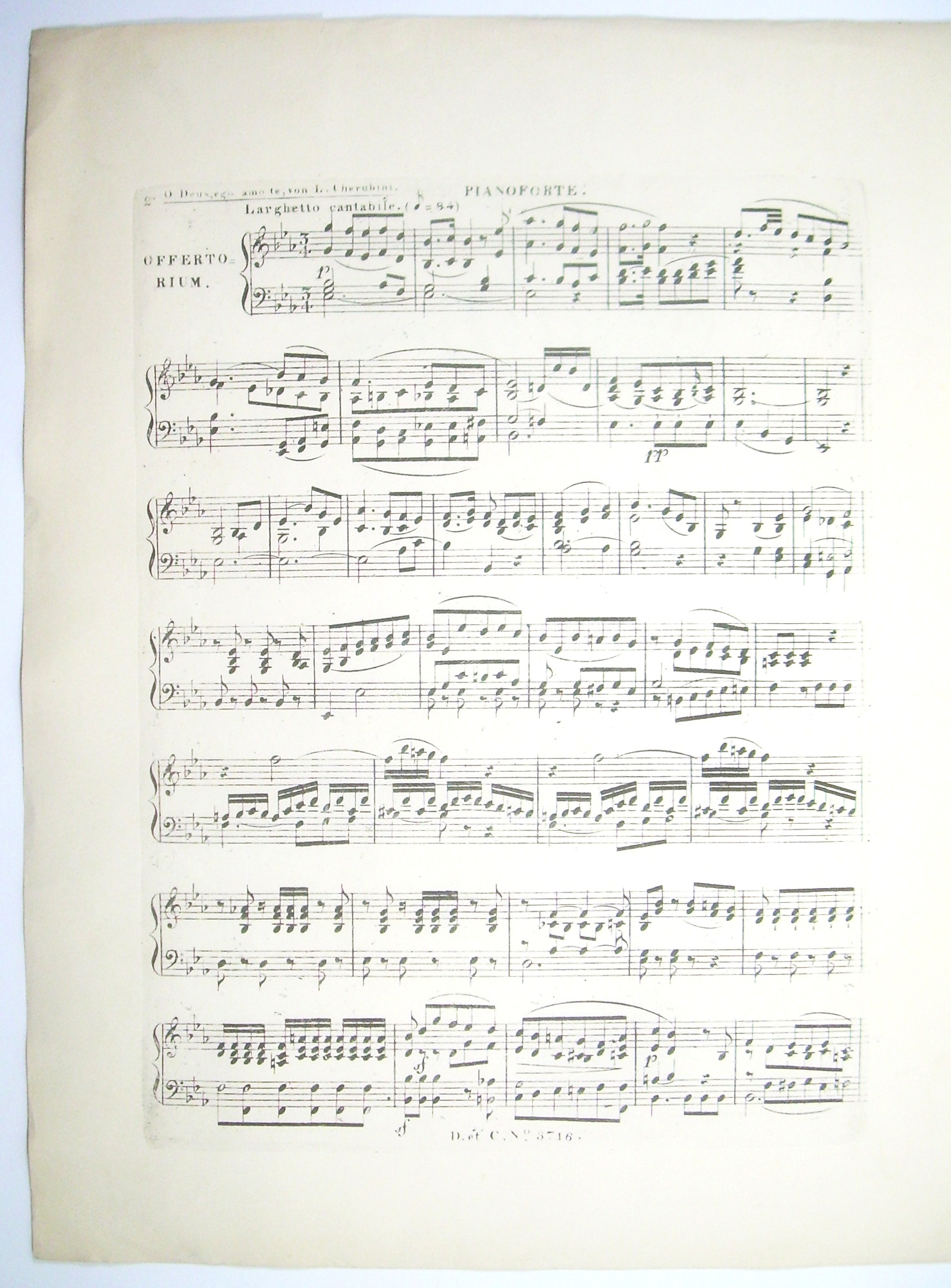 Offertorium, (O Deus ego amo te). Solo für eine Altstimme, mit Begleitung von 2 Violinen, Viola, Violoncell und Contrabass. Mit begefügter Begleitung des Pianoforte statt des Orchesters.