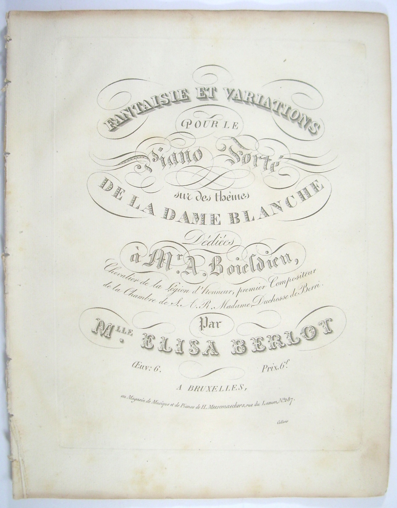Fantaisie et variations pour le Piano Forté sur des thèmes de la Dame blanche, dédiées à Mr A. Boieldieu, Chevalier de la Légion d'honneur, premier Compositeur de la Chambre de S.A.R. Madame, Duchesse de Berri. Oeuv. 6.