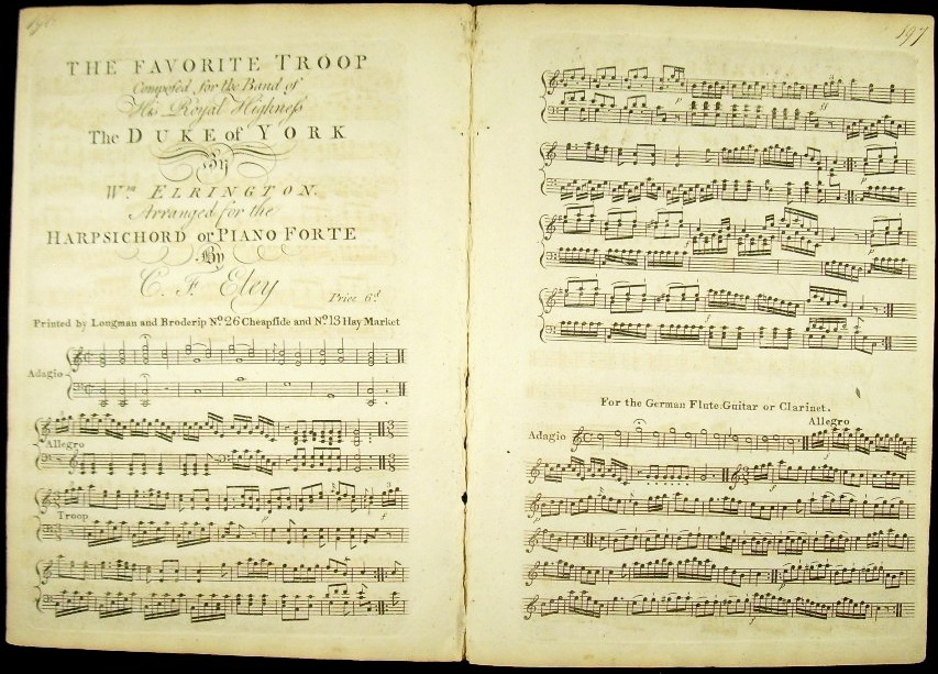 The favorite troop composed for the Band of his Royal Highness the Duke of York..., arranged for the harpsichord or piano-forte by C. F. Eley.