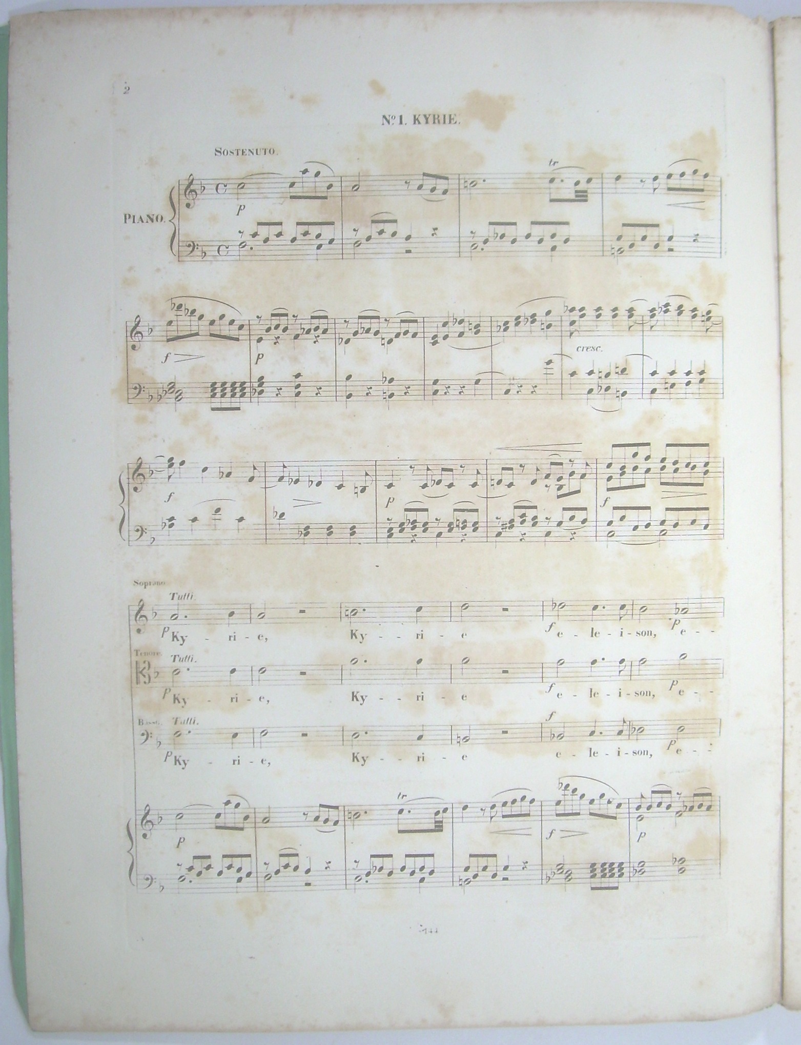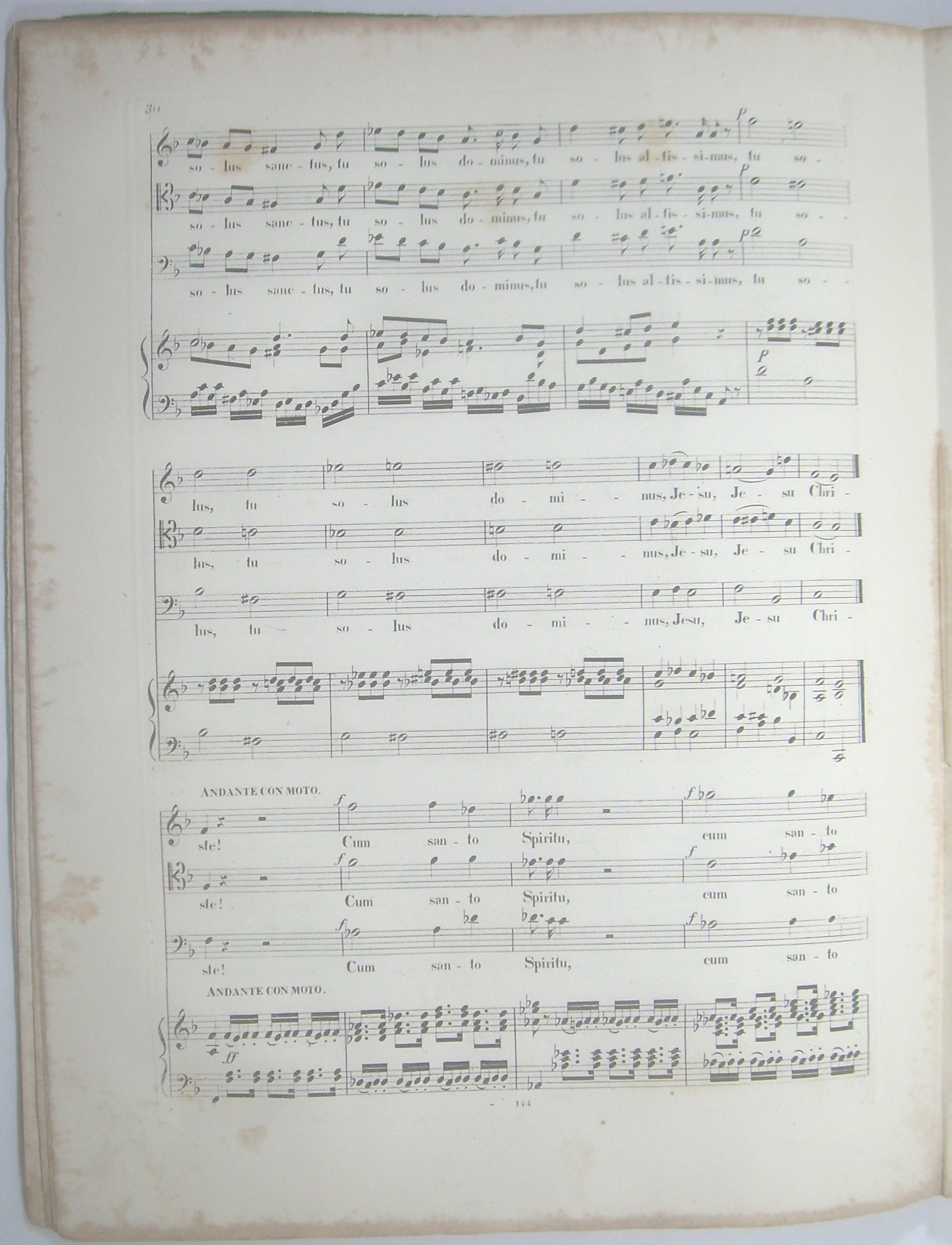 Erste lateinische Messe für drei Singstimmen (Solo und Chor). Vollständiger Klavierauszug. Zweite Auflage.