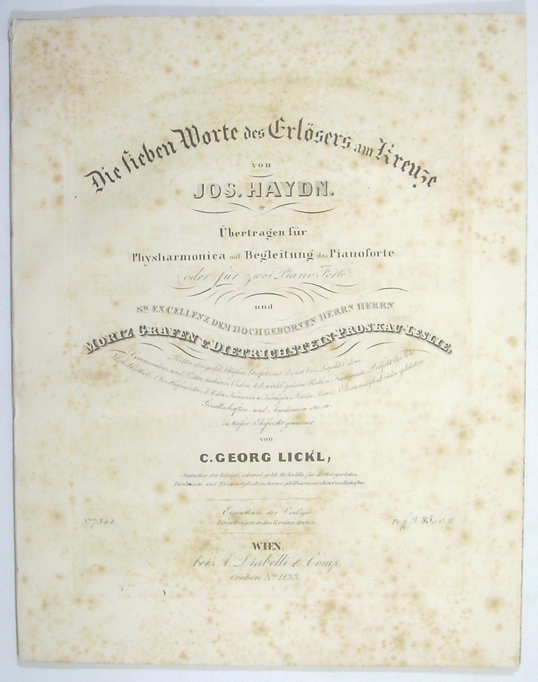 Die sieben Worte des Erlösers am Kreuze von Jos. Haydn. Übertragen für Physharmonica mit Begleitung des Pianoforte ... von C. Georg Lickl. = Wiener Salon-Musik.10tes Heft.