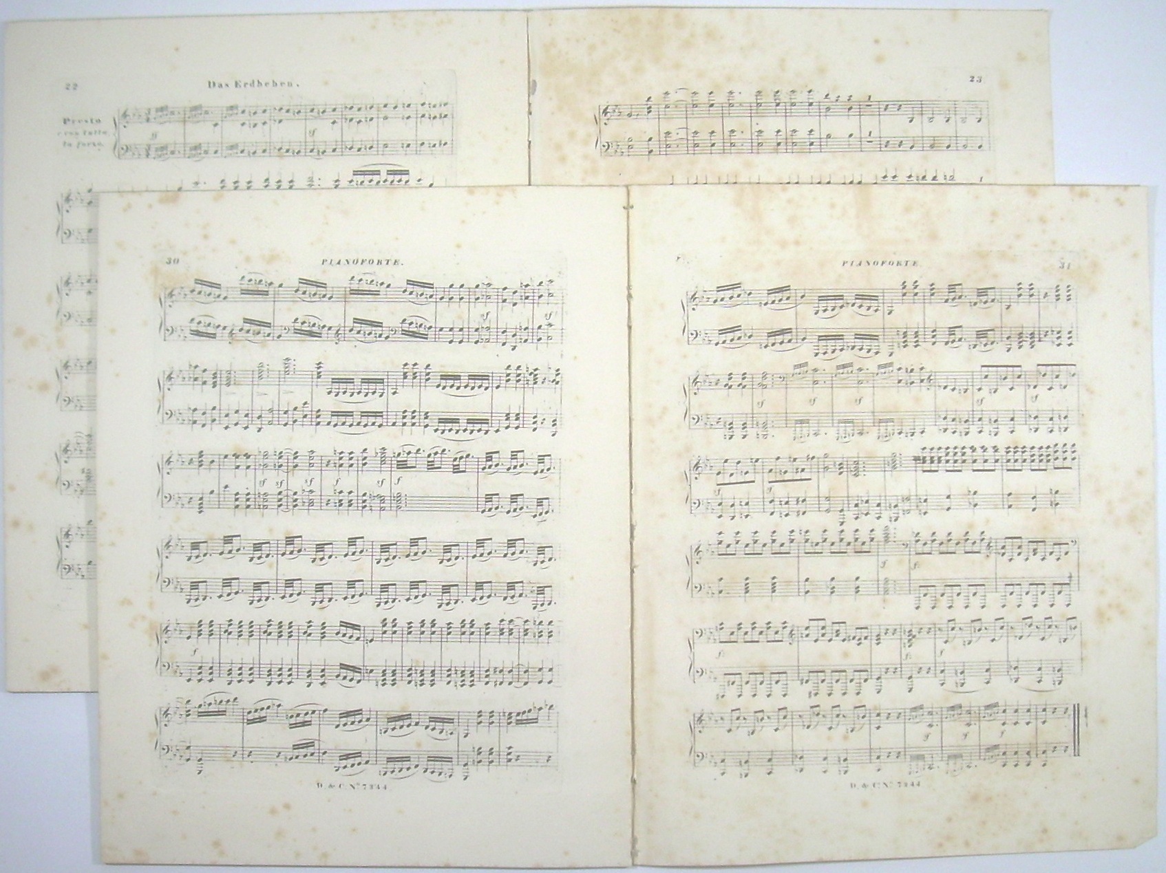 2 Hefte 33x26 cm, 23, 31 Seiten, gestochen, die Physharmonicastimme mit gestochenem Titel, ausgebunden, Rücken dezent verstärkt, stockfleckig.