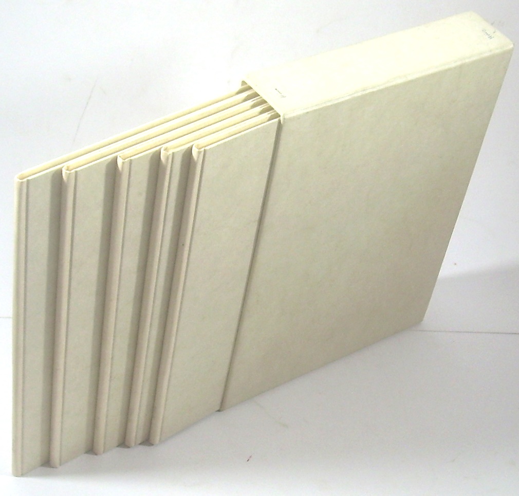 5 Simmbücher 22x17 cm in Hardcover, in Schuber mit silber geprägtem Rückentitel (an einer Ecke leicht beschädigt).