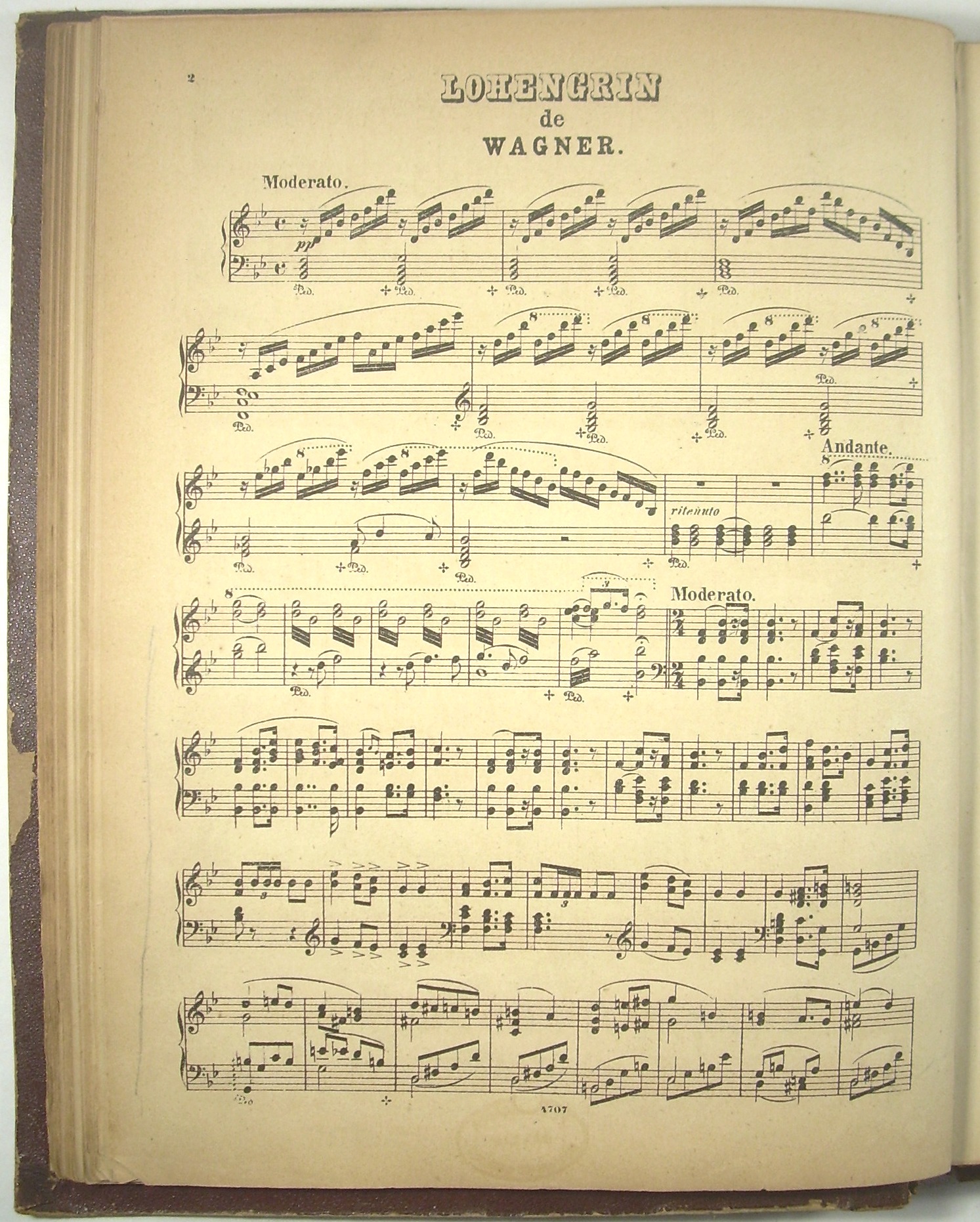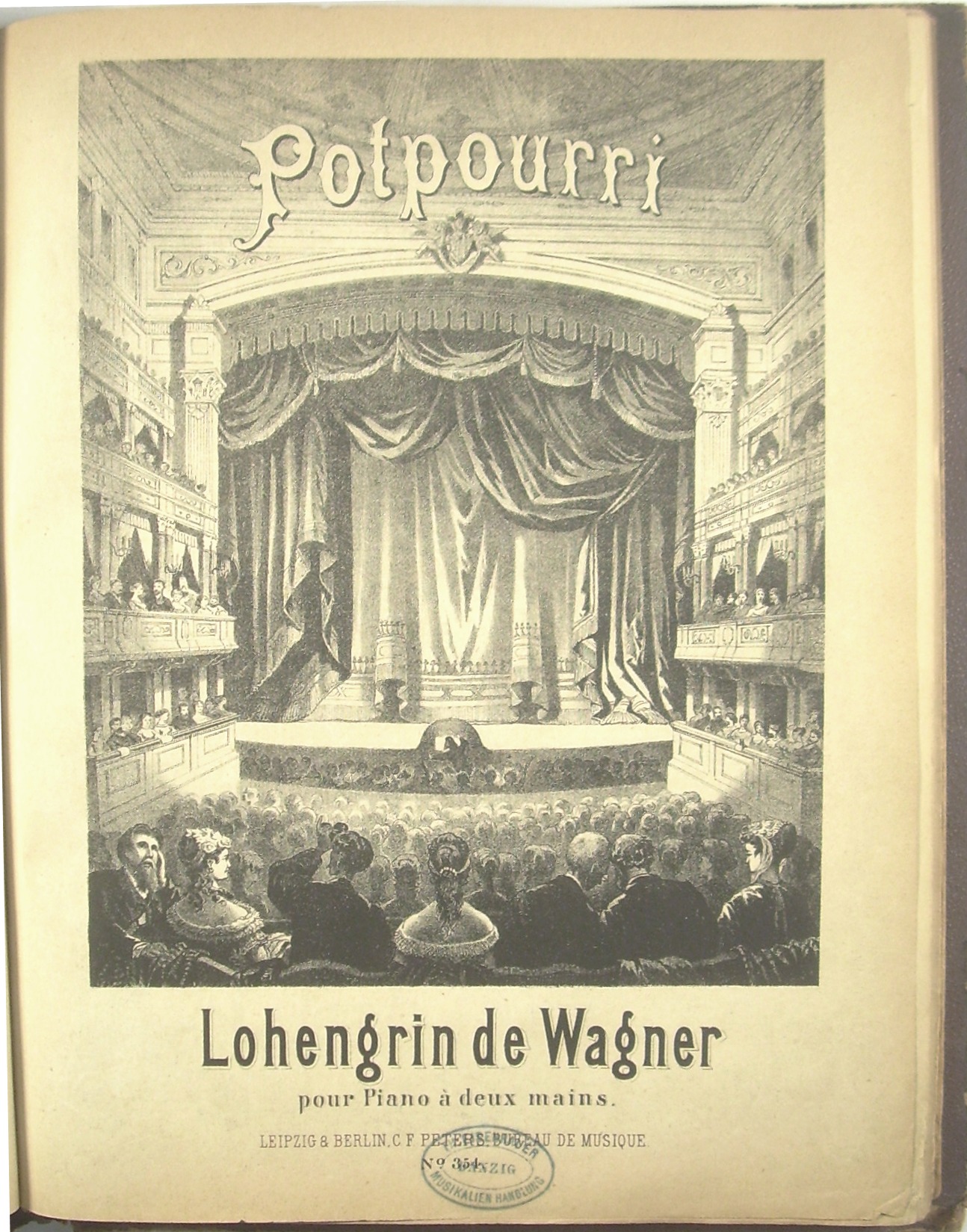 Datierung nach PN. - Salomon Jadassohn (1831-1902), deutscher Komponist, Pianist, Dirigent, Musikpädagoge. Schüler von Moritz Hauptmann (Leipzig) und Franz Liszt (Weimar). Dirigent des Chores der Leipziger Synagoge, und der Euterpe-Konzerte in Leipzig. Ab 1871 Professor am Konservatorium in Leipzig. Sein umfangreiches kompositorisches Werk veröffentlichte Jadassohn teilweise unter seinem Pseudonym "Hector Ollivier". - Die Potpourris über Wagner Rienzi und Lohengrin / Flotow, Allessandro Stradella und Martha / Mozart, Zauberflöte / Donizetti, Lucrezia Borgia / Offenbach, Orfée aux Enfers und La belle Helène / Auber, Le premier jour de bonheur / Meyerbeer, Les Huguenots / Gounod, Faust / Rossini, Stabat mater / Marches, Danses, Chansons.