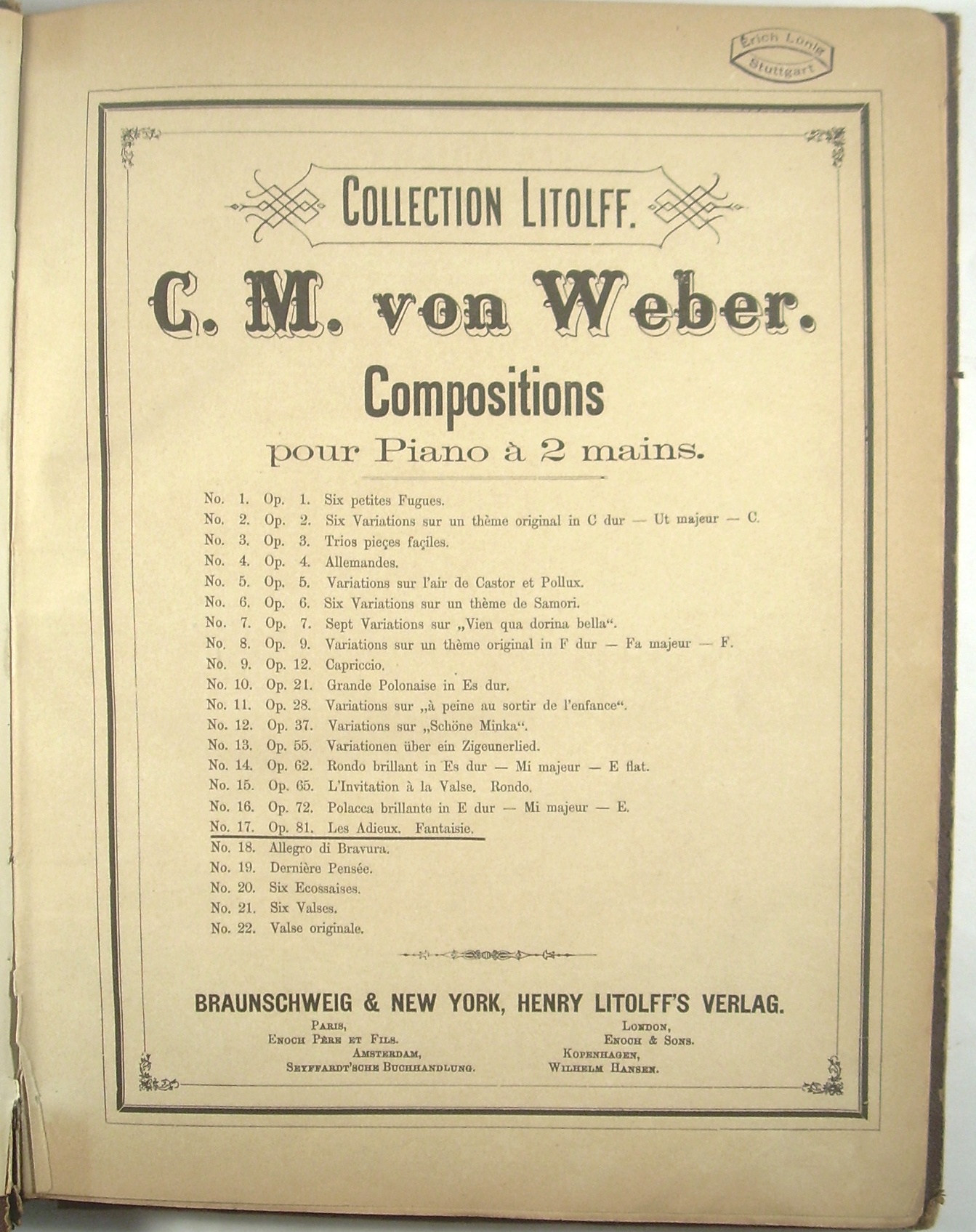 Braunschweig, Leipzig, Berlin, Litolff, Peters, [ca. 1870]