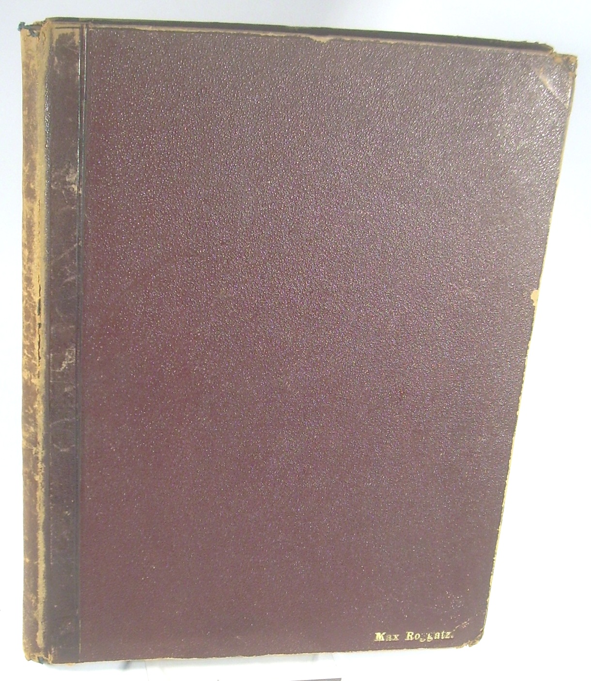32x25 cm, 17 Hefte in 1 Band, zusammen ca. 290 Seiten. (Vom vorletzten Heft "Chansons" fehlt das Titelblatt mit der 1. Notenseite). Halblederband der Zeit mit goldgeprägtem Namen auf dem Vorderdeckel, berieben, vorderes Gelenk angebrochen, Vorsatz mit handschriftlicher Widmung von 1905. Druck auf billigem dünnen Papier, Seiten vereinzelt mit Bleistiftanstreichungen.