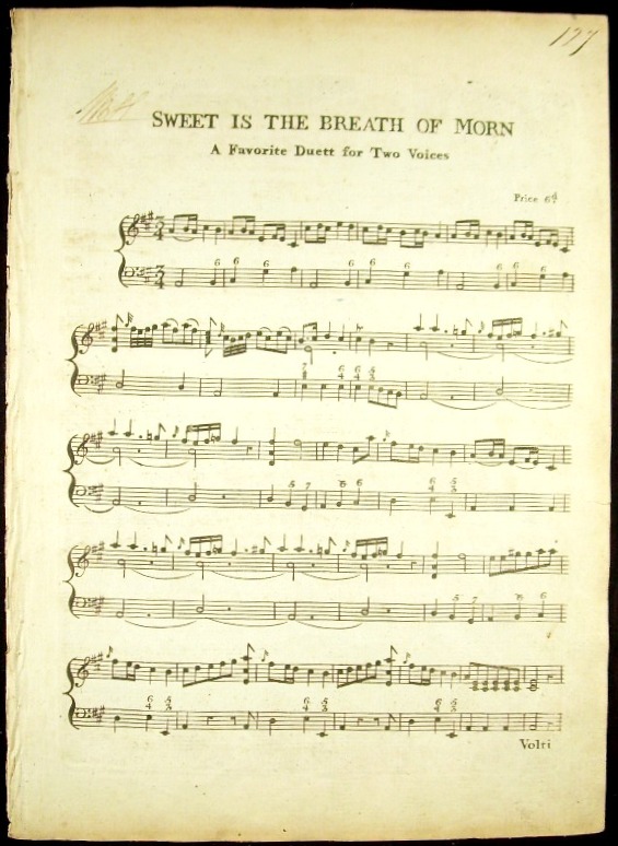 Sweet is the breath of Morn: A Favorite Duett for two Voices.