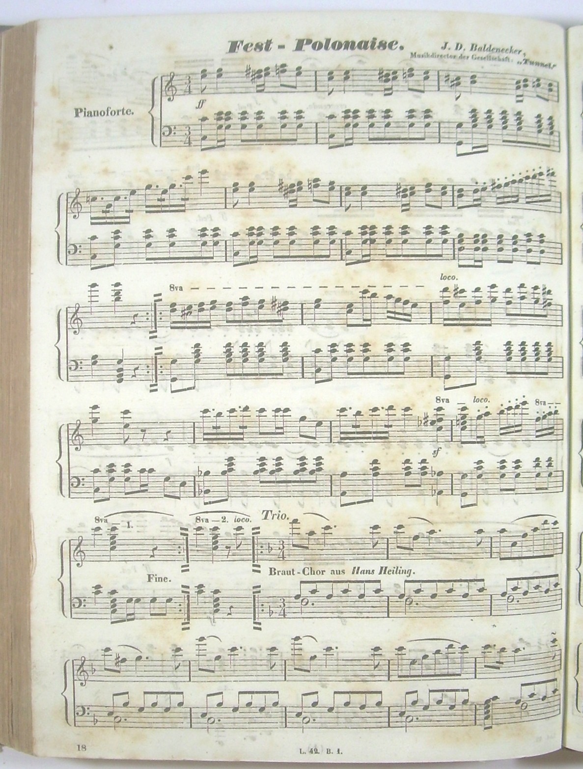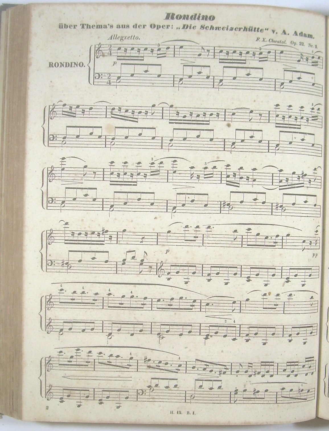 Jahrgang bibliographisch ermittelt, Datierung über die Kompositionen: Bearbeitungen (Rondeaus, Variationen) populärer Stücke (Opernmelodien von Adam, Auber, Bellini, Herold, Lobe, Meyerbeer, Walzer von Johann Strauss Vater), deren spätestes "I Puritani" von Bellini (UA 1835) ist. Die Opuszahlen von Chwatal (20, 22) entsprechen dieser Datierung. - Das angebundene 4. Quartal der gleichen Reihe aufgrund der Opuszahlen davor, das letzte Stück "Introduction und Variationen über 'Heiter auch in ernster Zeit', Walzer von Strauss (op. 48, aus dem Cholera-Jahr in Wien 1831). Dieses 4. Quartal auch mit 2 Polonaisen von Johann Daniel Baldenecker (1810-1854), 1832-1836 in Leipzig als Musikdirektor der Gesellschaft "Tunnel". - Enthält tagesaktuelle Originalkompositionen unterhaltsamer Art für das pianistische Laien-Publikum von Jacob Schmitt; Gottlob Schuberth; Salomon Burkhardt; Johann Wenzel Kalliwoda; F X Chwatal; Ludwig van Beethoven; Carl Maria von Weber; Friedrich Wilhelm Kücken; Ferdinand Beyer; F Lindner; Ludwig Spamer; Louis Schuberth; Johann Ludwig Böhner; Louis Cunze, Johann Daniel Baldenecker; Conrad Dinkler und F. Bugislaus junior. Unter den Komponisten finden sich etablierte Hofkapellmeister, Klavierpädagogen, und auch Vater und Bruder des Verlegers.
